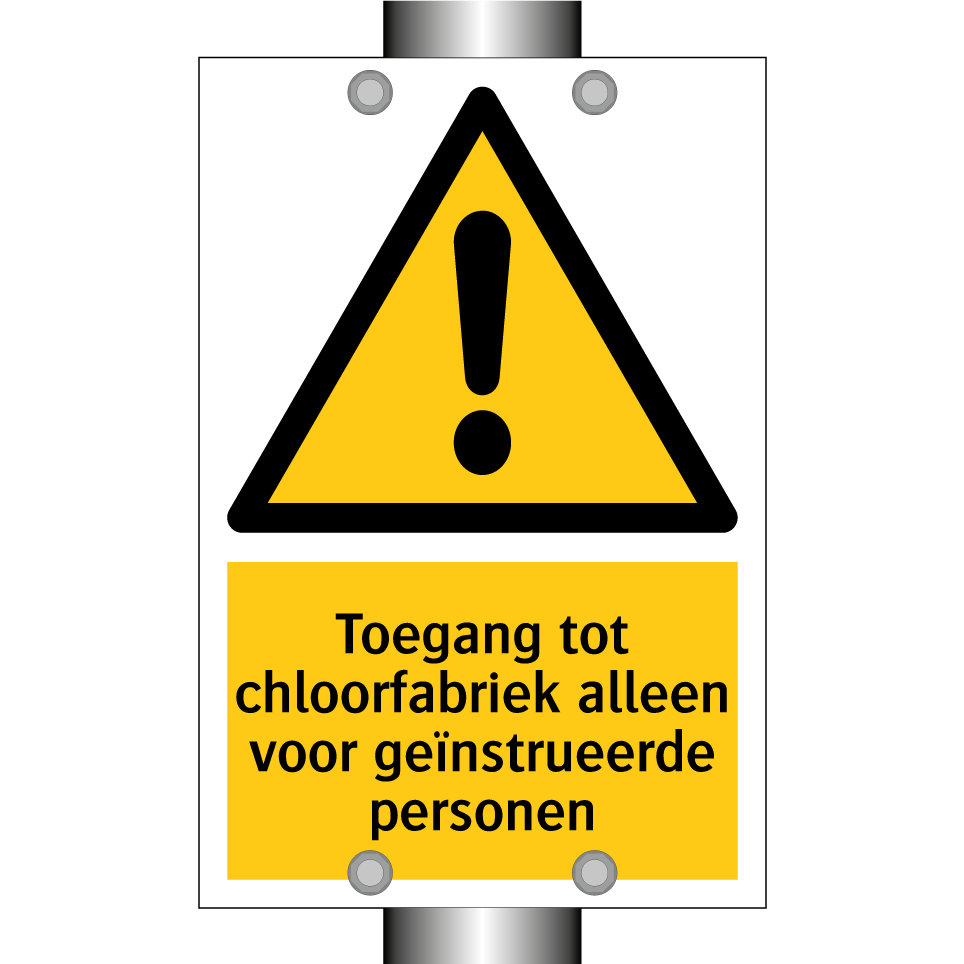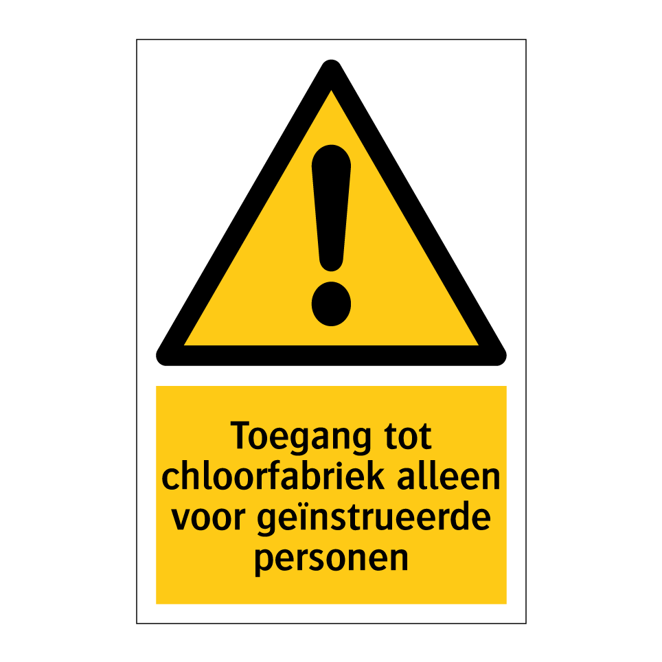 Waarschuwingsbord met de tekst Toegang tot chloorfabriek alleen voor geïnstrueerde personen