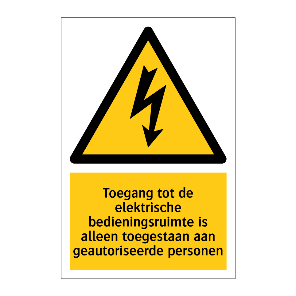 Waarschuwingsbord met de tekst Toegang tot de elektrische bedieningsruimte is alleen toegestaan aan geautoriseerde personen