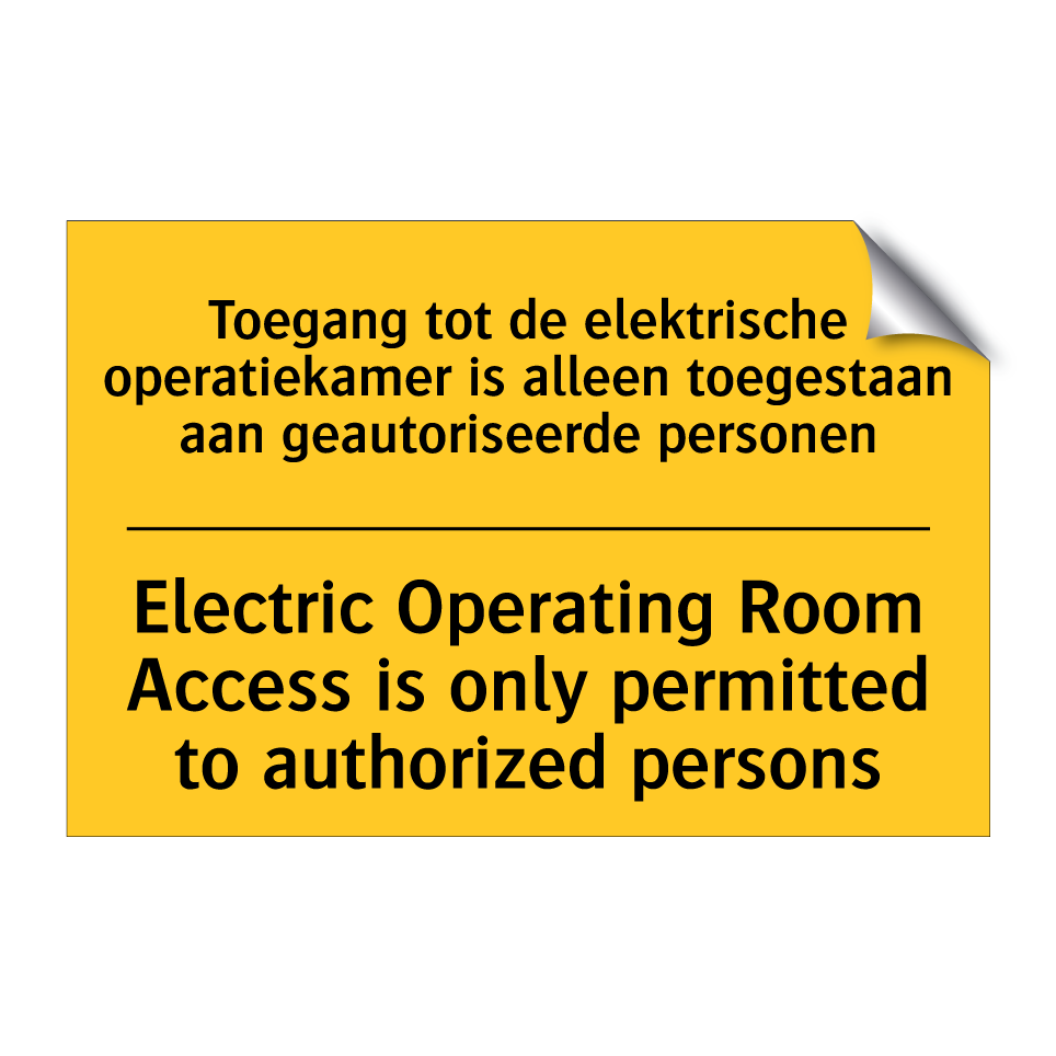 Waarschuwingsbord met de tekst Toegang tot de elektrische operatiekamer is alleen toegestaan aan geautoriseerde personen / Electric Operating Room Access is only permitted to authorized persons