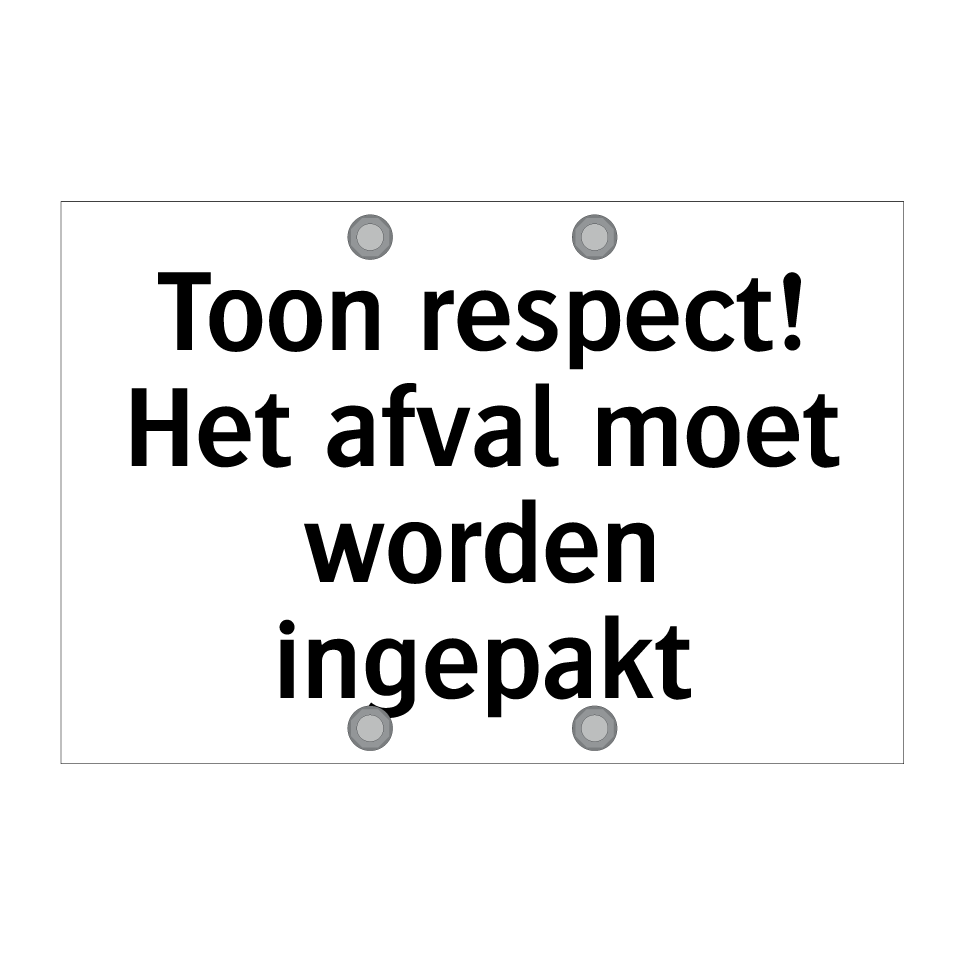 Verbodsbord met de tekst Toon respect! Het afval moet worden ingepakt