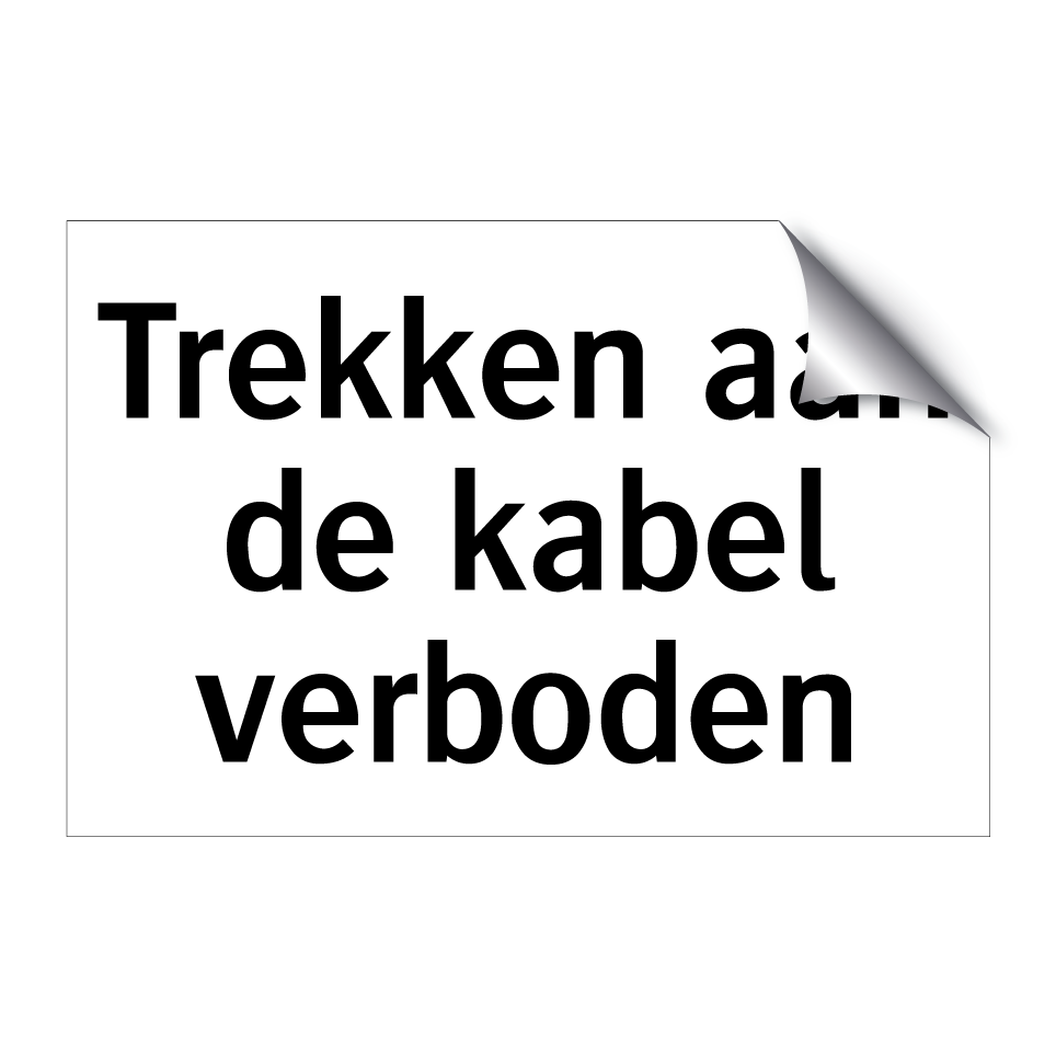 Verbodsbord met de tekst Trekken aan de kabel verboden