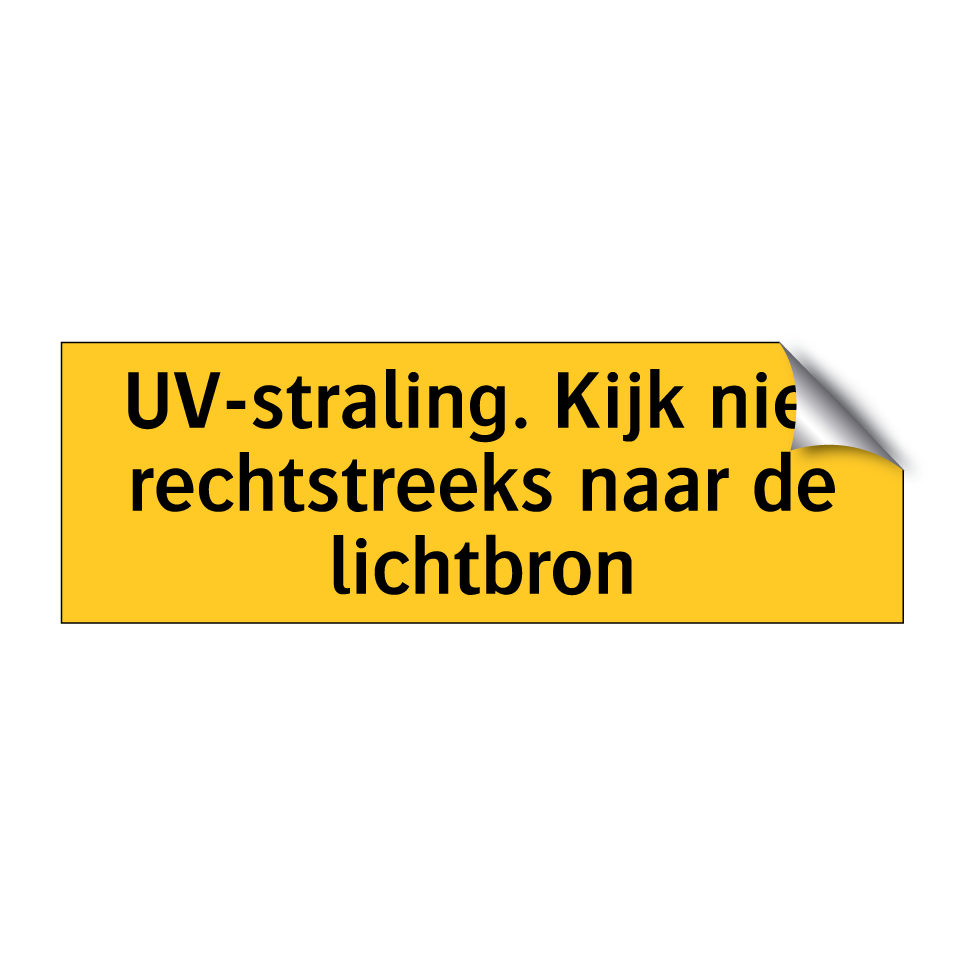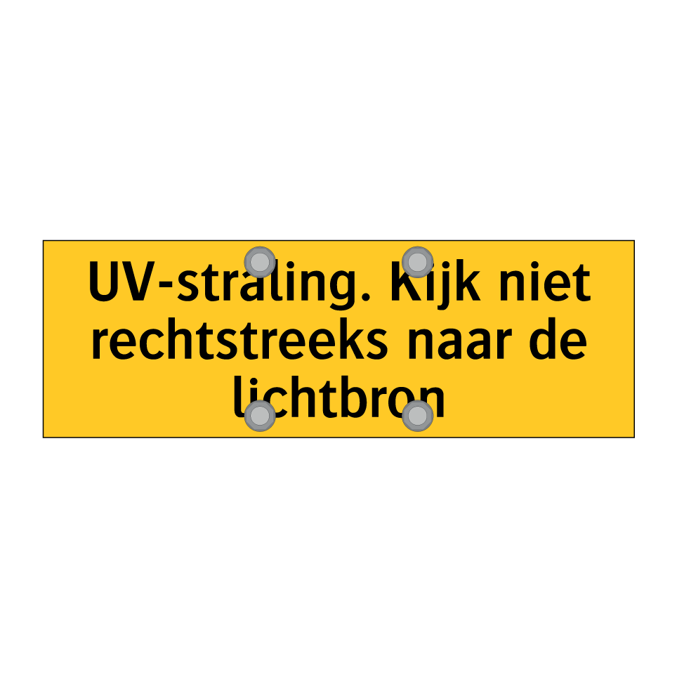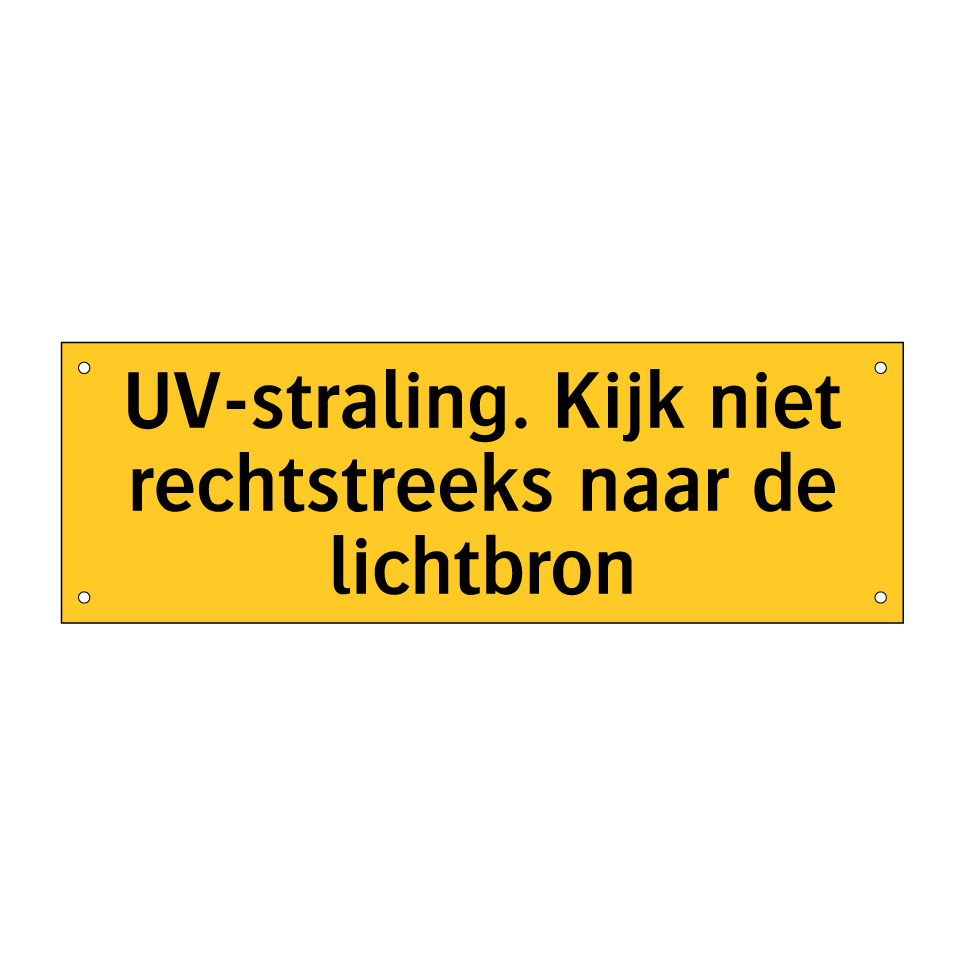 Waarschuwingsbord met de tekst UV-straling. Kijk niet rechtstreeks naar de lichtbron