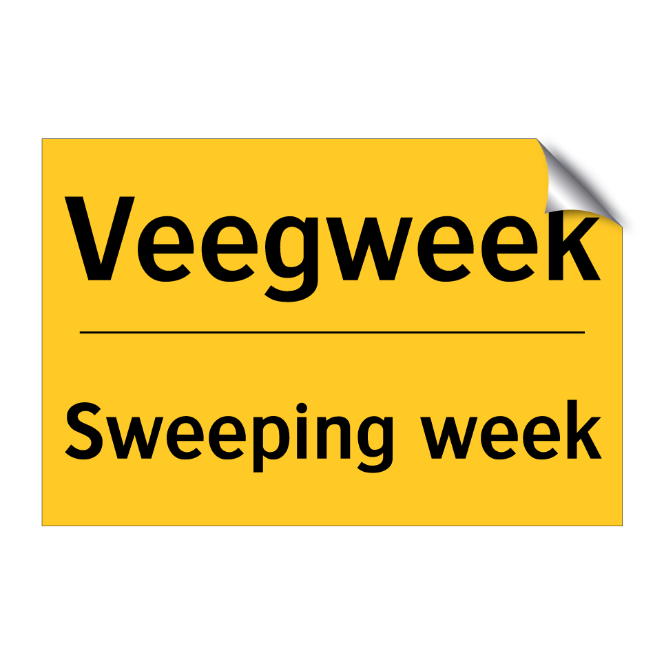 Waarschuwingsbord met de tekst Veegweek / Sweeping week