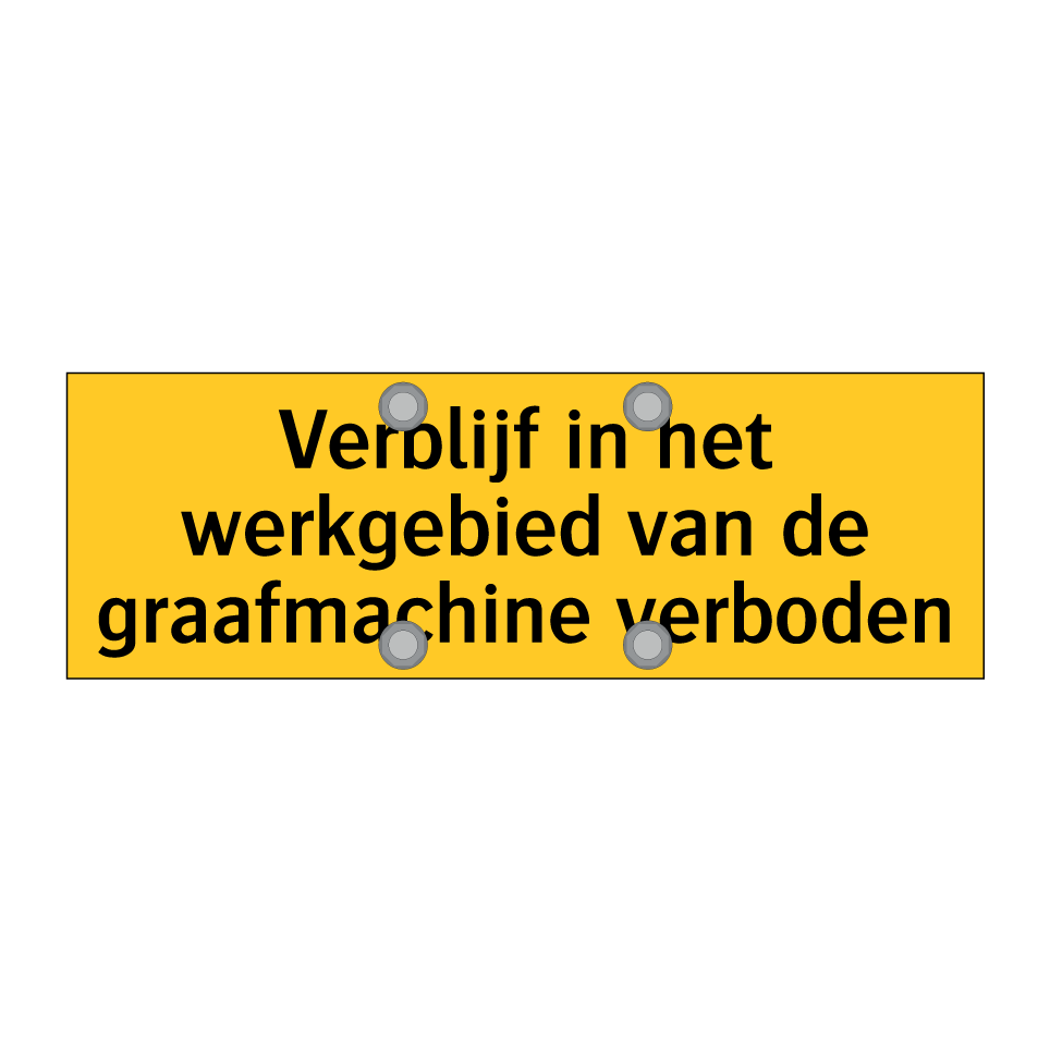 Waarschuwingsbord met de tekst Verblijf in het werkgebied van de graafmachine verboden