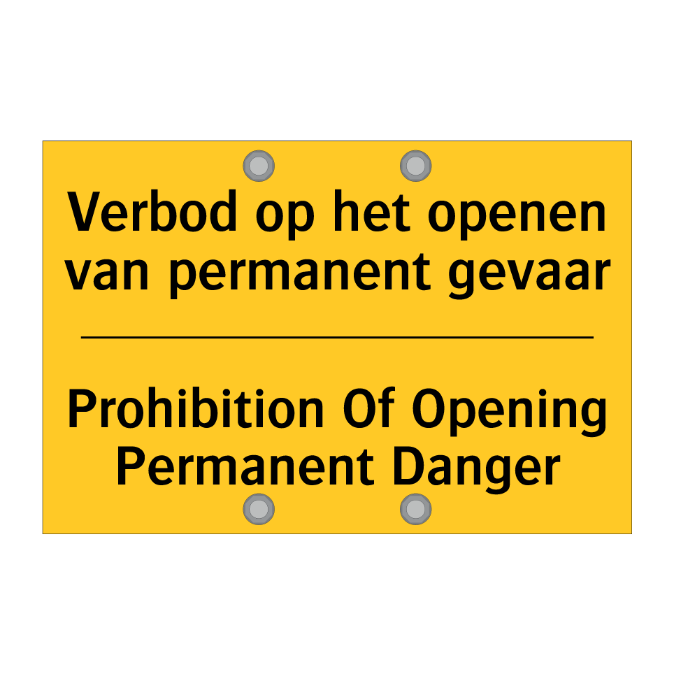 Waarschuwingsbord met de tekst Verbod op het openen van permanent gevaar / Prohibition Of Opening Permanent Danger