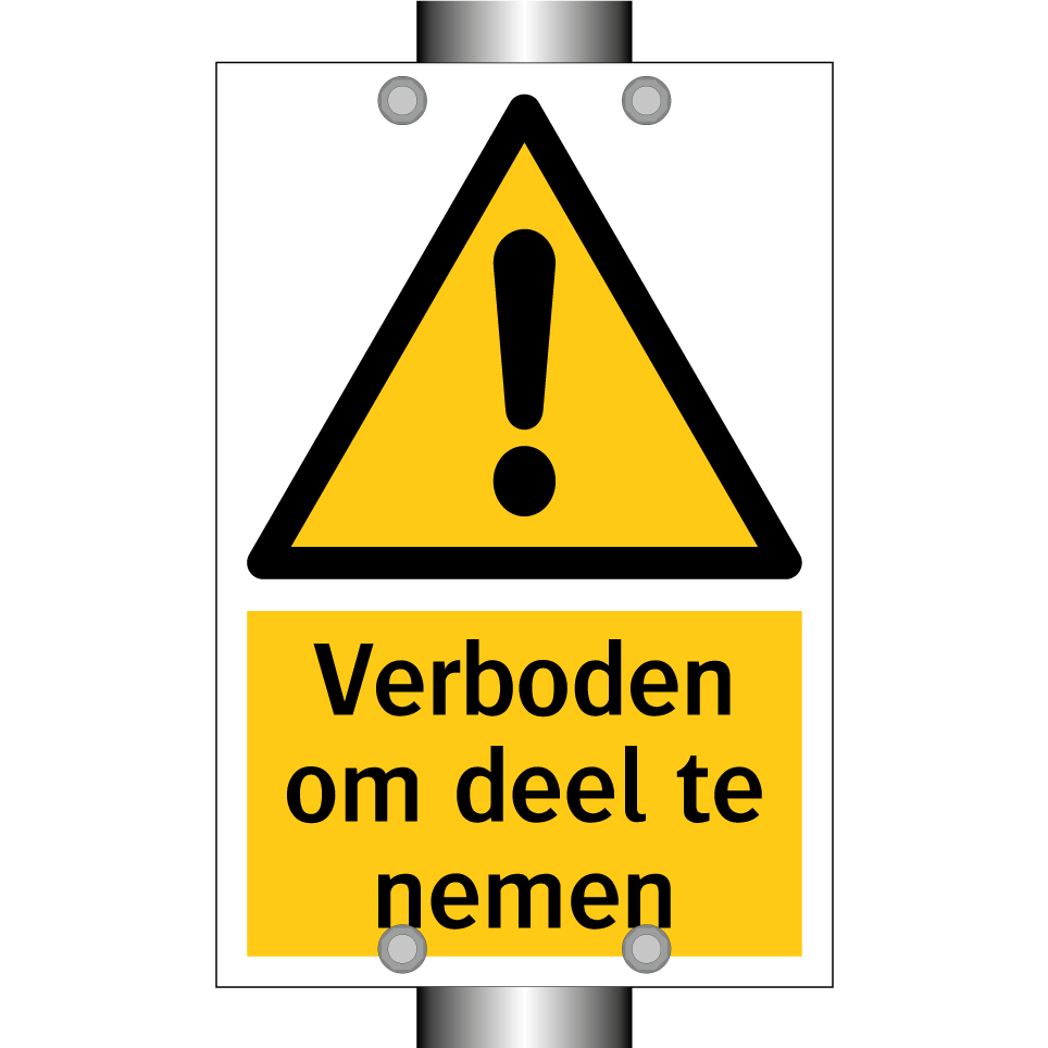 Waarschuwingsbord met de tekst Verboden om deel te nemen