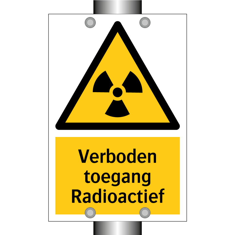 Waarschuwingsbord met de tekst Verboden toegang Radioactief