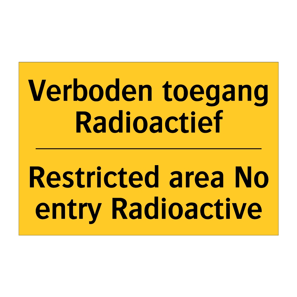 Waarschuwingsbord met de tekst Verboden toegang Radioactief / Restricted area No entry Radioactive