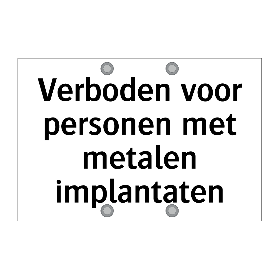 Verbodsbord met de tekst Verboden voor personen met metalen implantaten