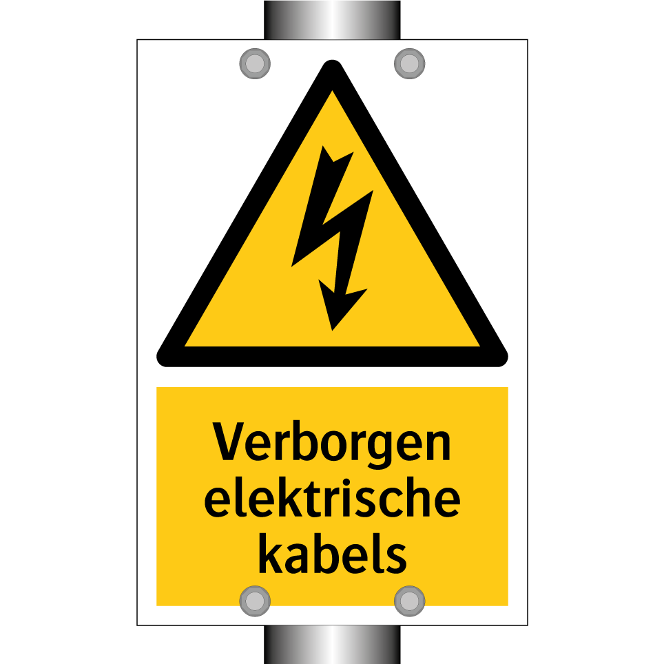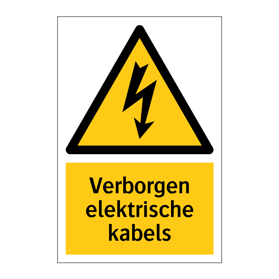 Waarschuwingsbord met de tekst Verborgen elektrische kabels