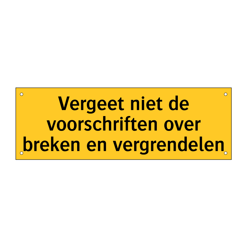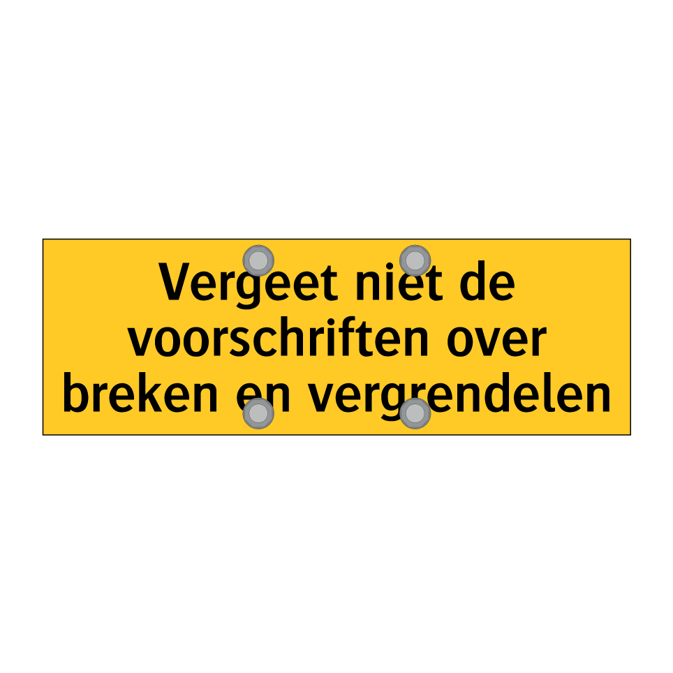 Waarschuwingsbord met de tekst Vergeet niet de voorschriften over breken en vergrendelen