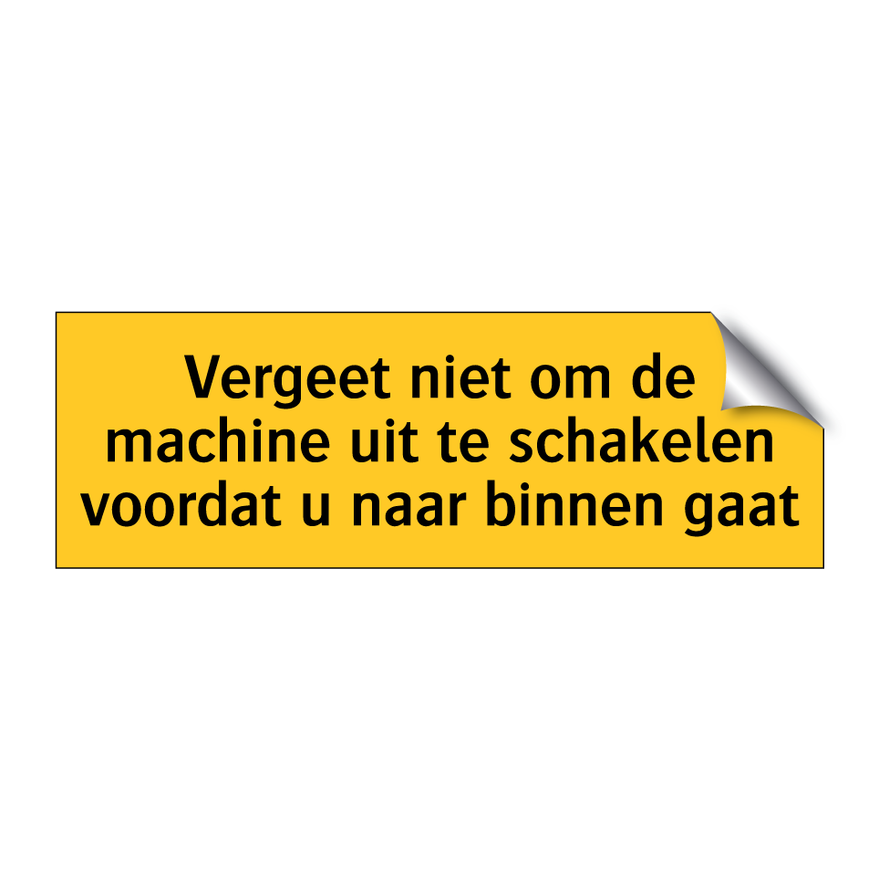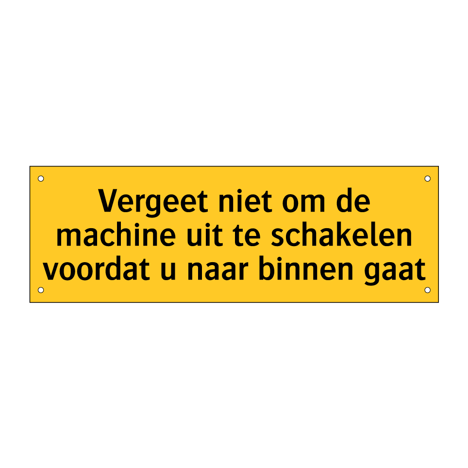 Waarschuwingsbord met de tekst Vergeet niet om de machine uit te schakelen voordat u naar binnen gaat