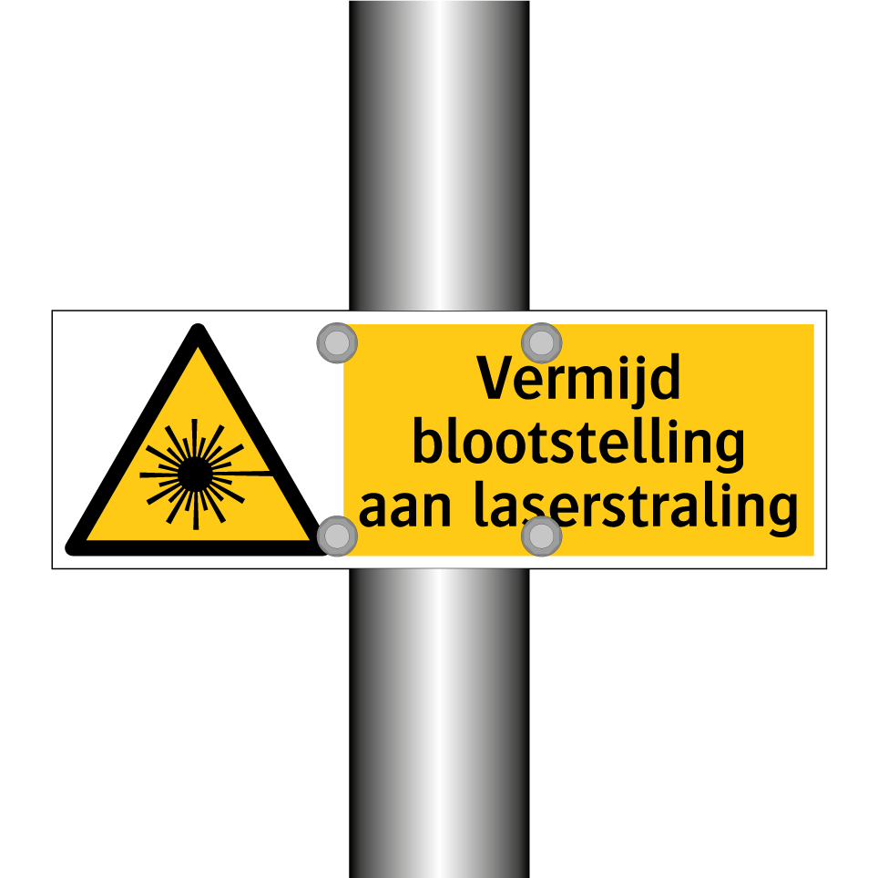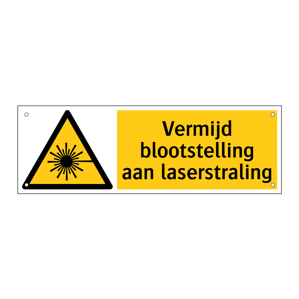 Waarschuwingsbord met de tekst Vermijd blootstelling aan laserstraling