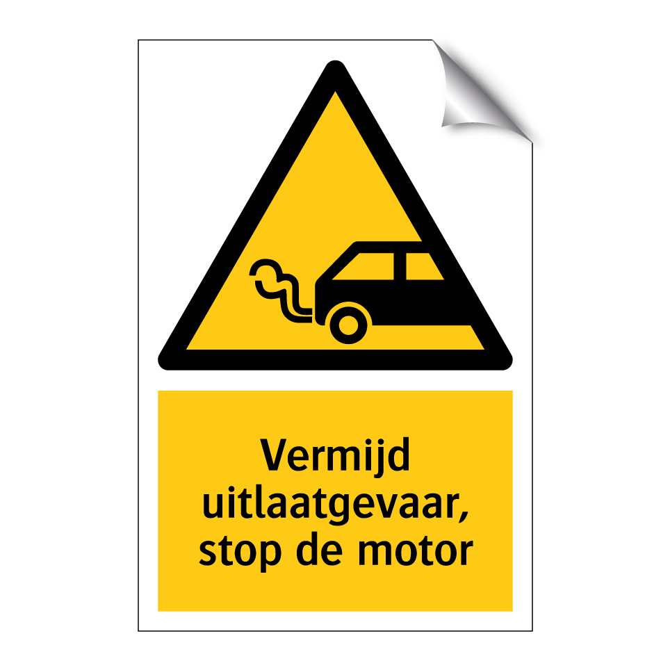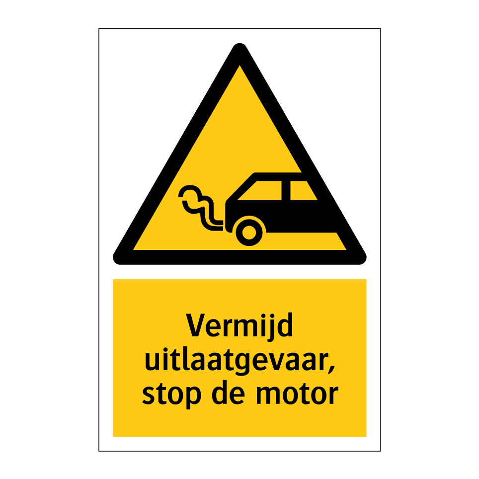 Waarschuwingsbord met de tekst Vermijd uitlaatgevaar, stop de motor