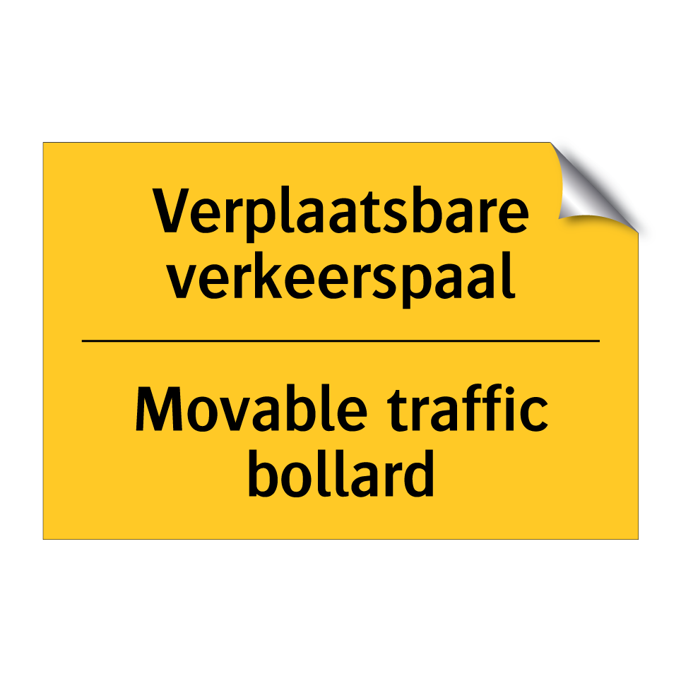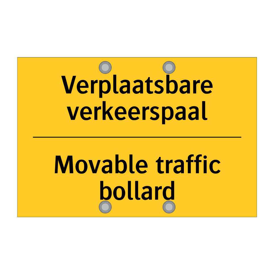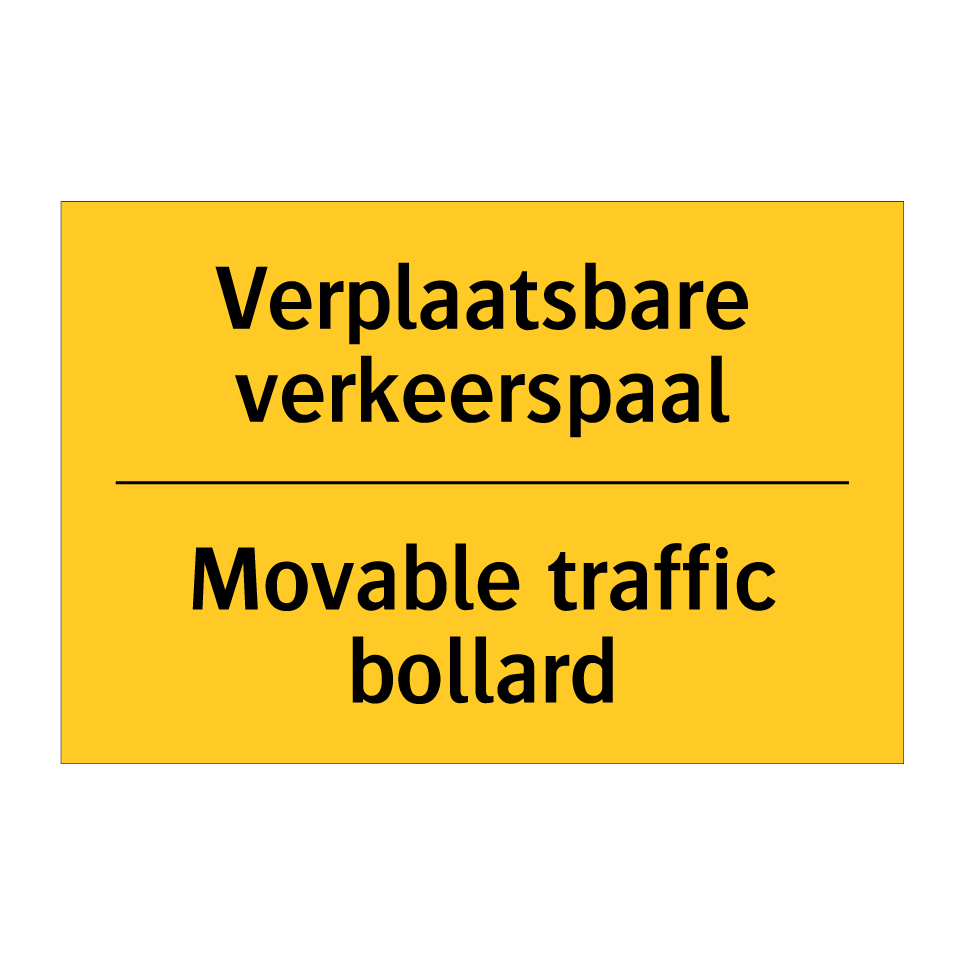 Waarschuwingsbord met de tekst Verplaatsbare verkeerspaal / Movable traffic bollard