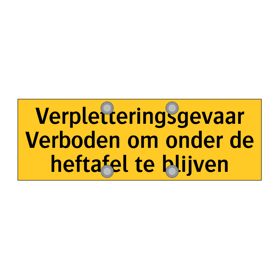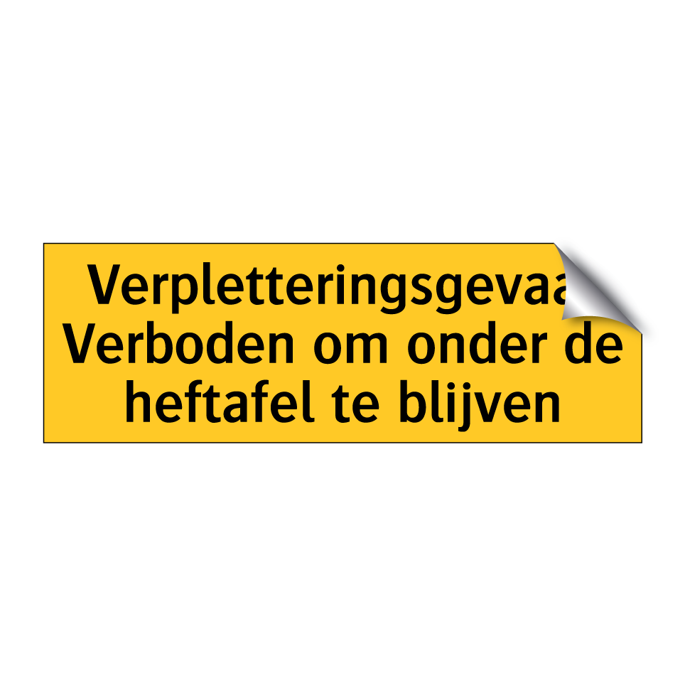 Waarschuwingsbord met de tekst Verpletteringsgevaar Verboden om onder de heftafel te blijven