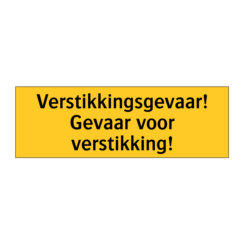 Waarschuwingsbord met de tekst Verstikkingsgevaar! Gevaar voor verstikking!