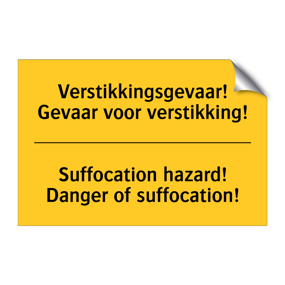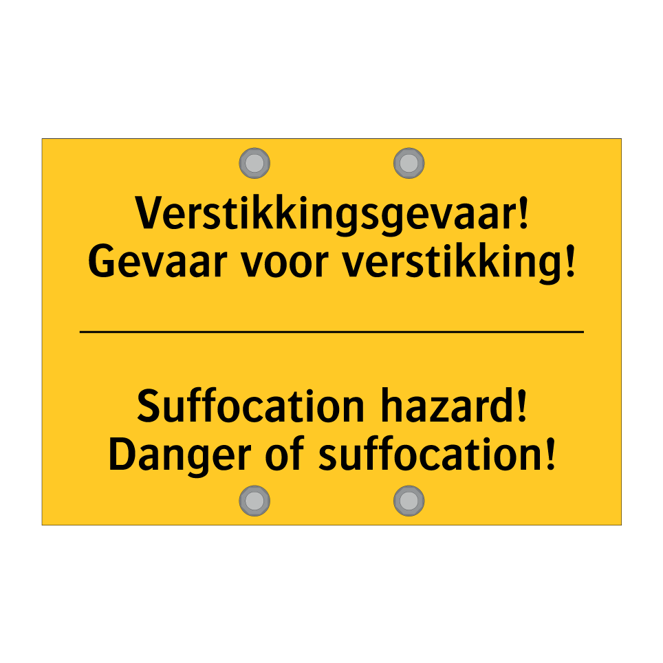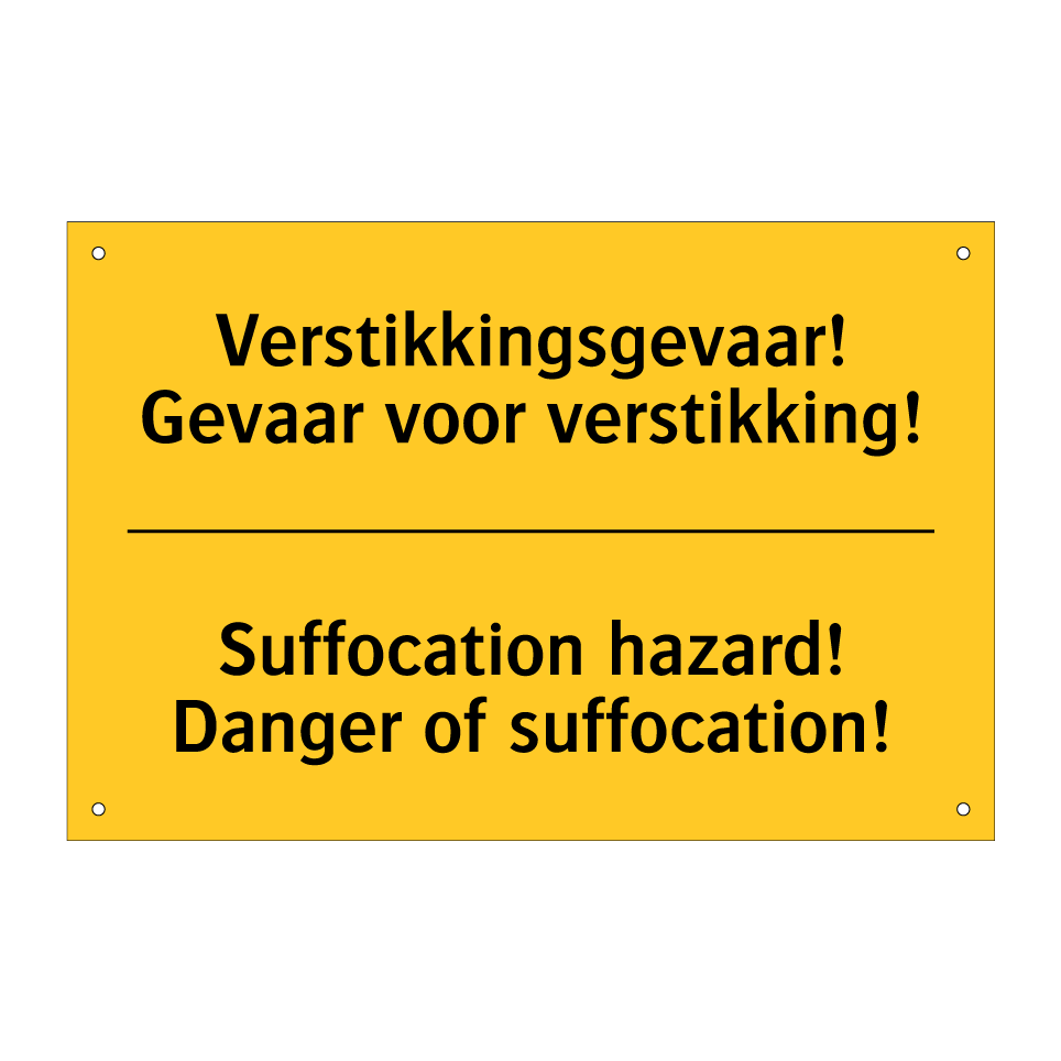 Waarschuwingsbord met de tekst Verstikkingsgevaar! Gevaar voor verstikking! / Suffocation hazard! Danger of suffocation!