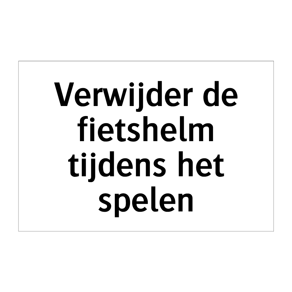 Verbodsbord met de tekst Verwijder de fietshelm tijdens het spelen