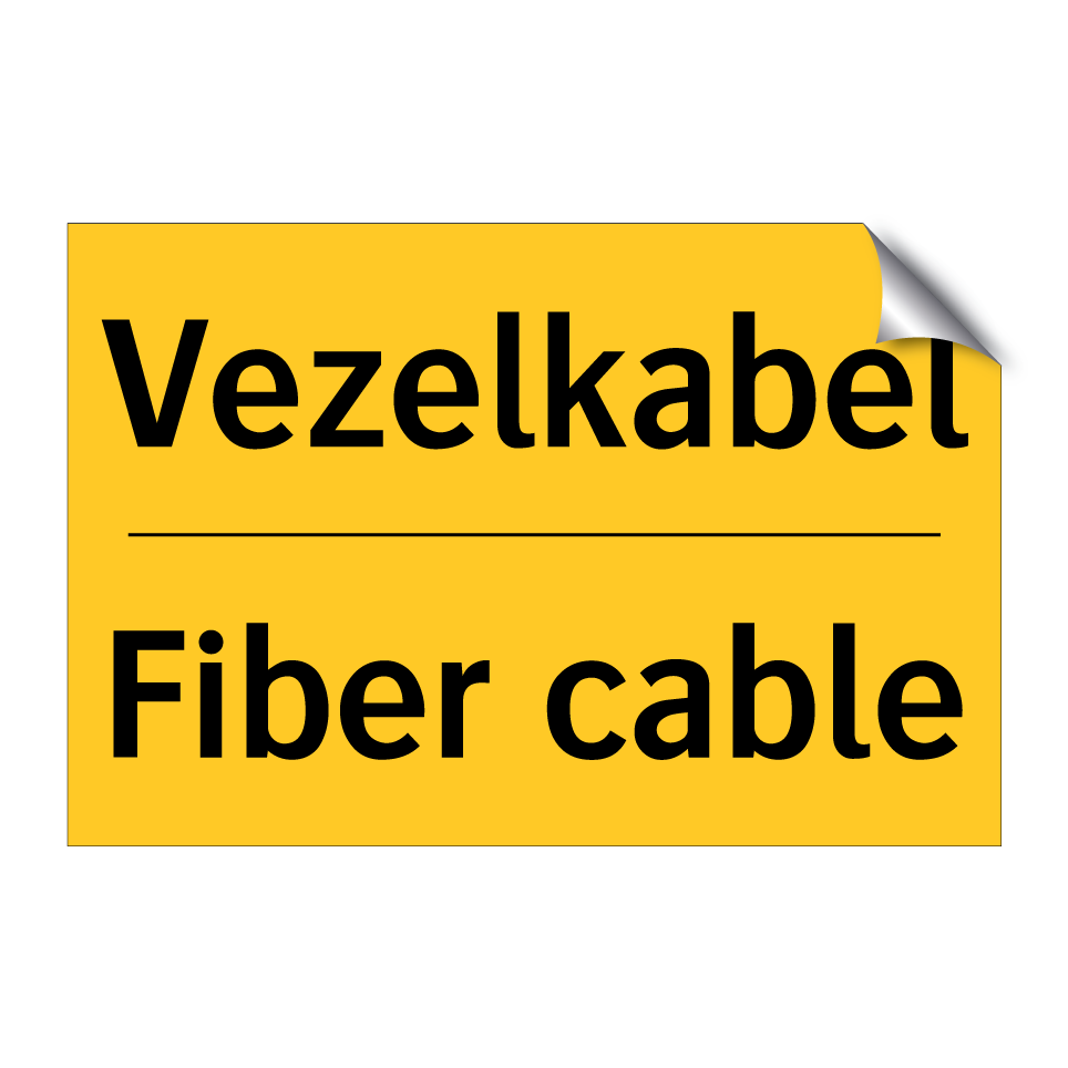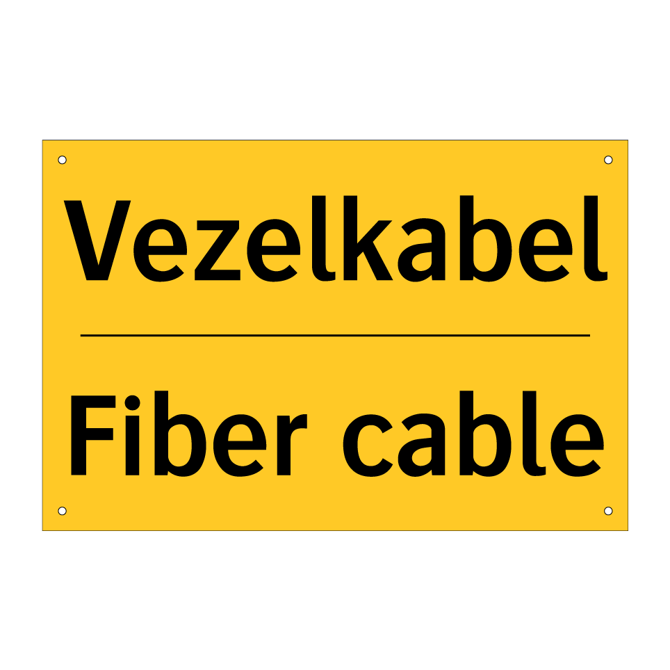 Waarschuwingsbord met de tekst Vezelkabel / Fiber cable