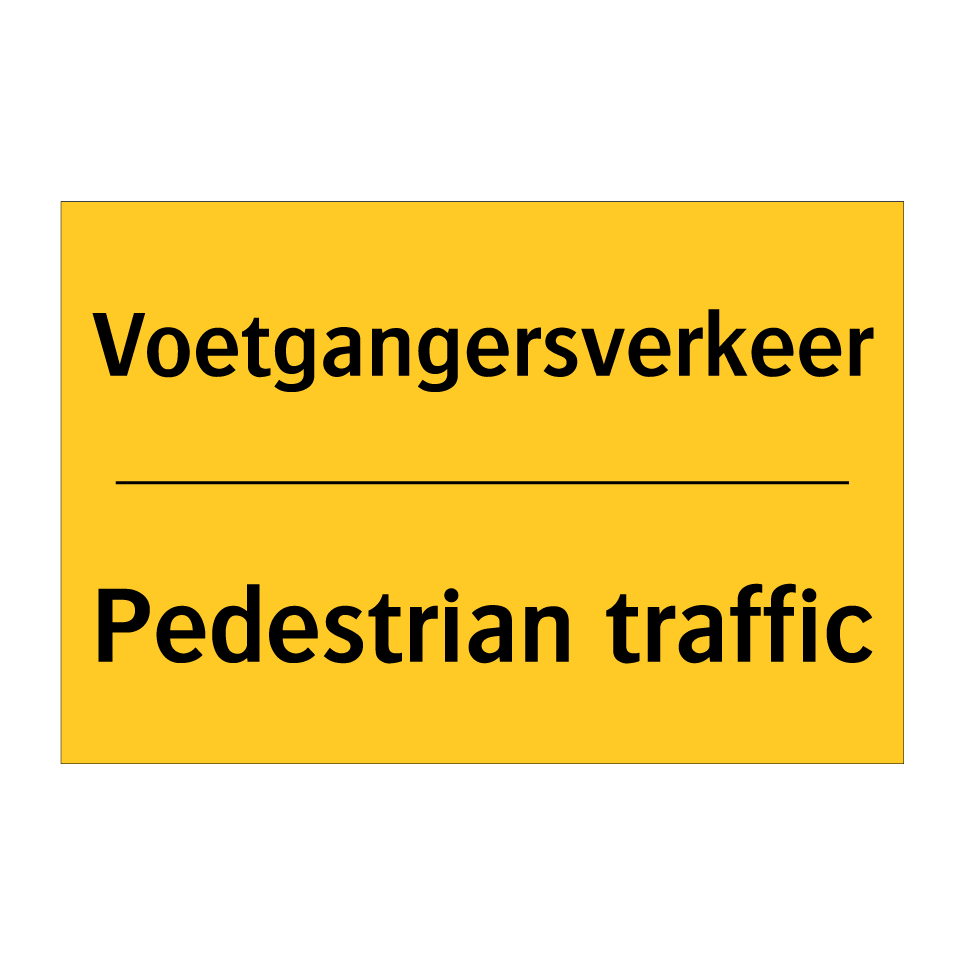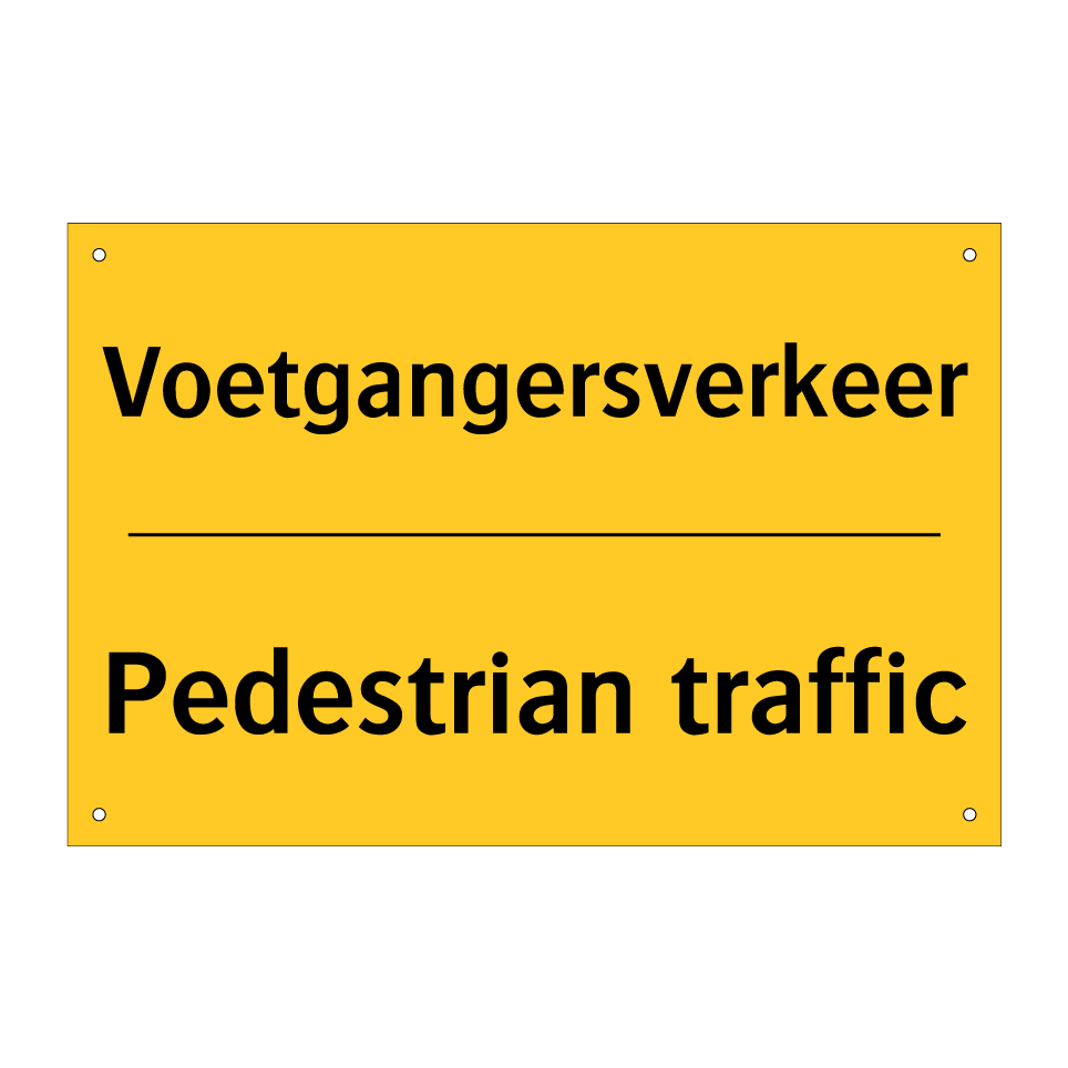 Waarschuwingsbord met de tekst Voetgangersverkeer / Pedestrian traffic