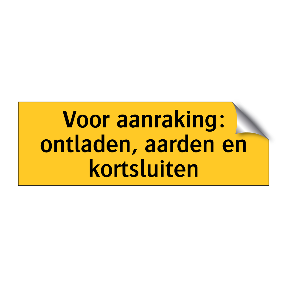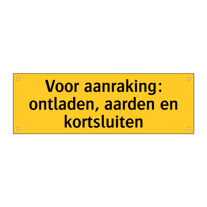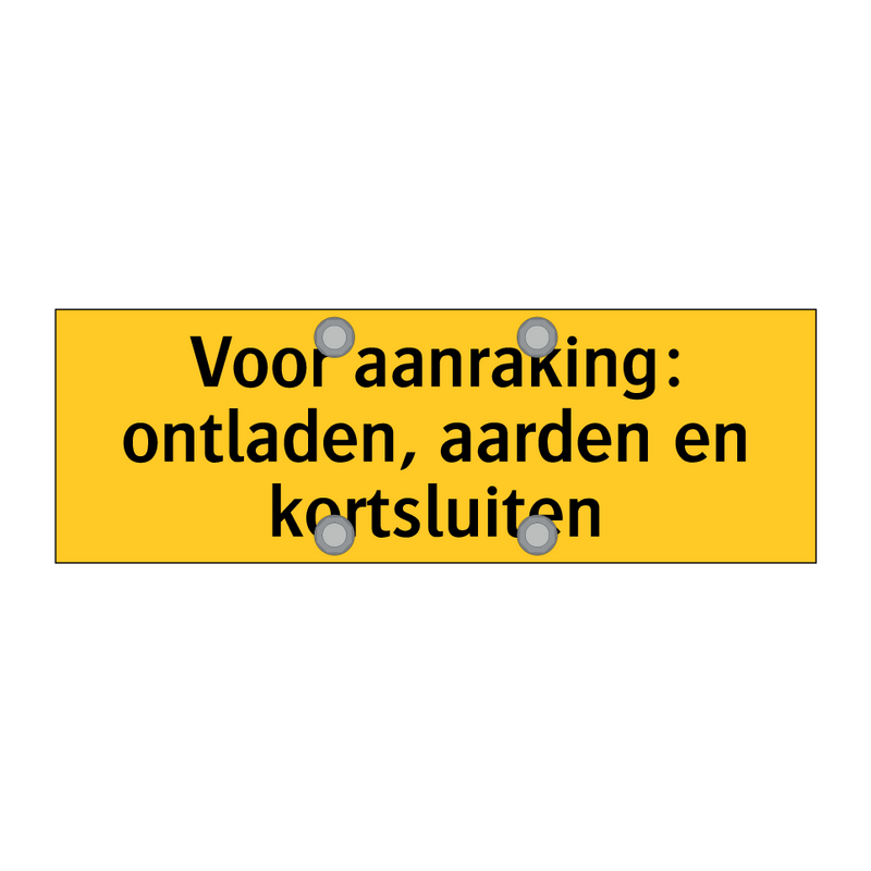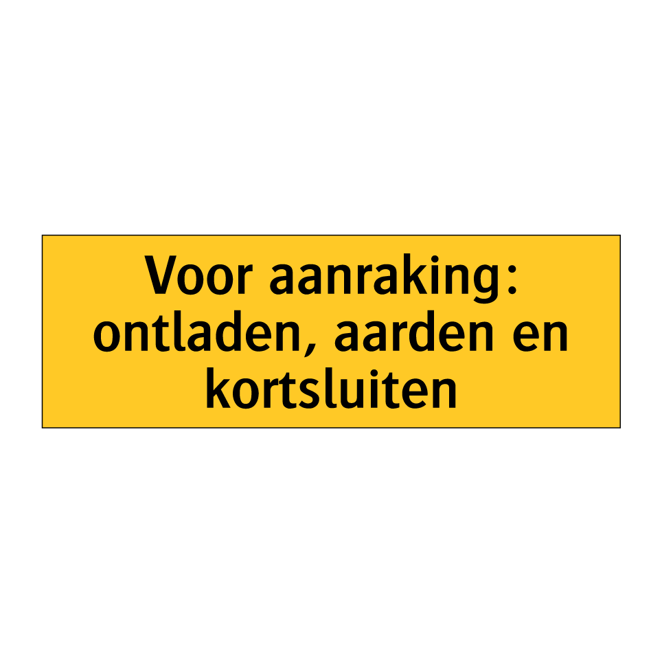 Waarschuwingsbord met de tekst Voor aanraking: ontladen, aarden en kortsluiten