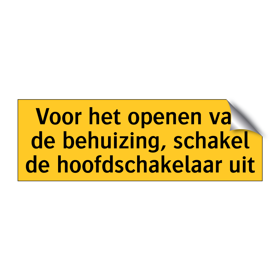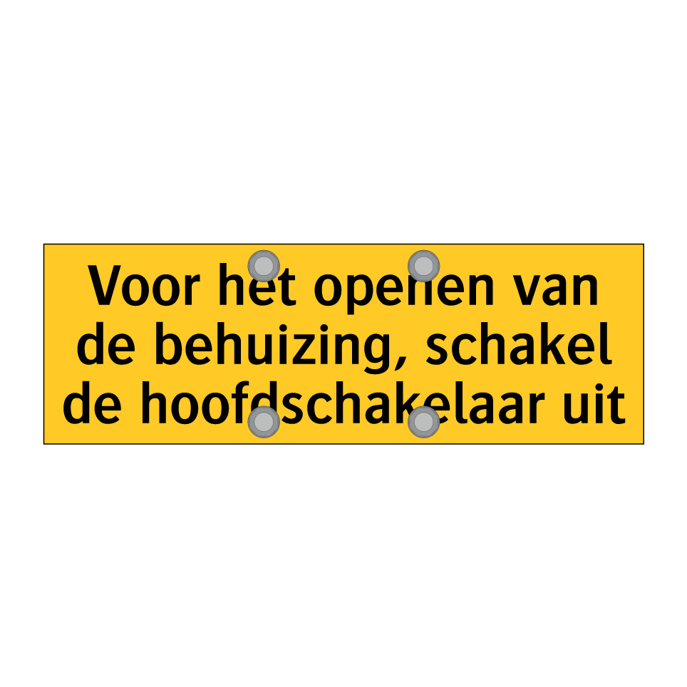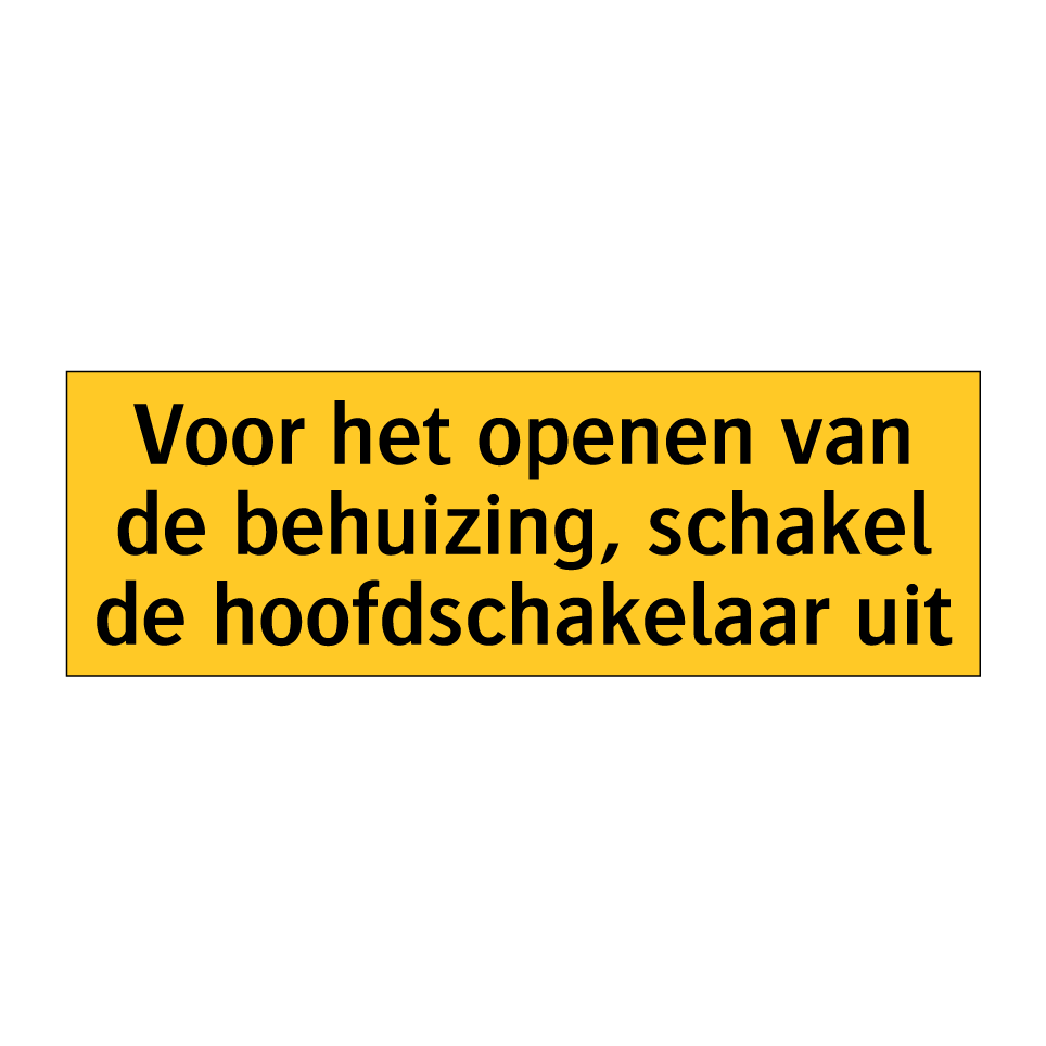 Waarschuwingsbord met de tekst Voor het openen van de behuizing, schakel de hoofdschakelaar uit