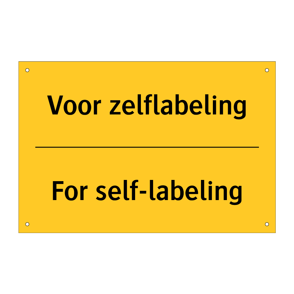 Waarschuwingsbord met de tekst Voor zelflabeling / For self-labeling
