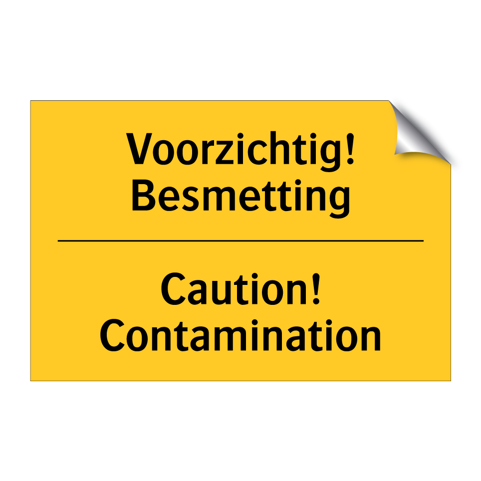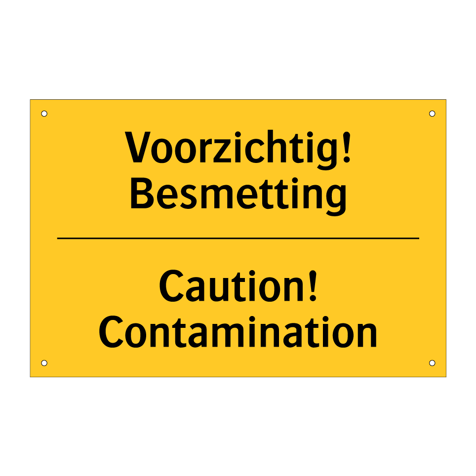 Waarschuwingsbord met de tekst Voorzichtig! Besmetting / Caution! Contamination