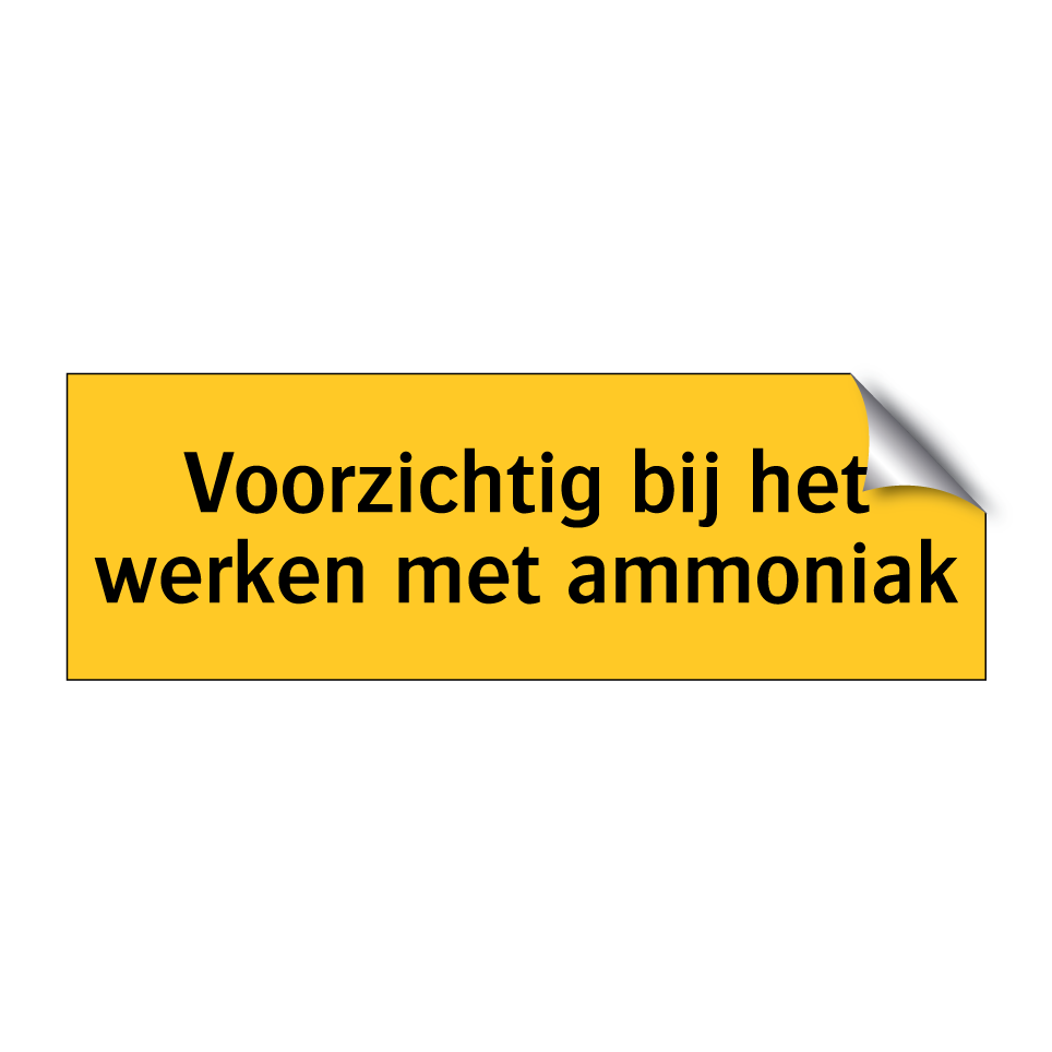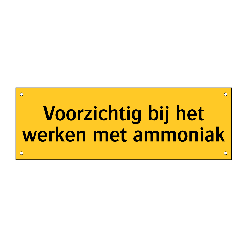 Waarschuwingsbord met de tekst Voorzichtig bij het werken met ammoniak