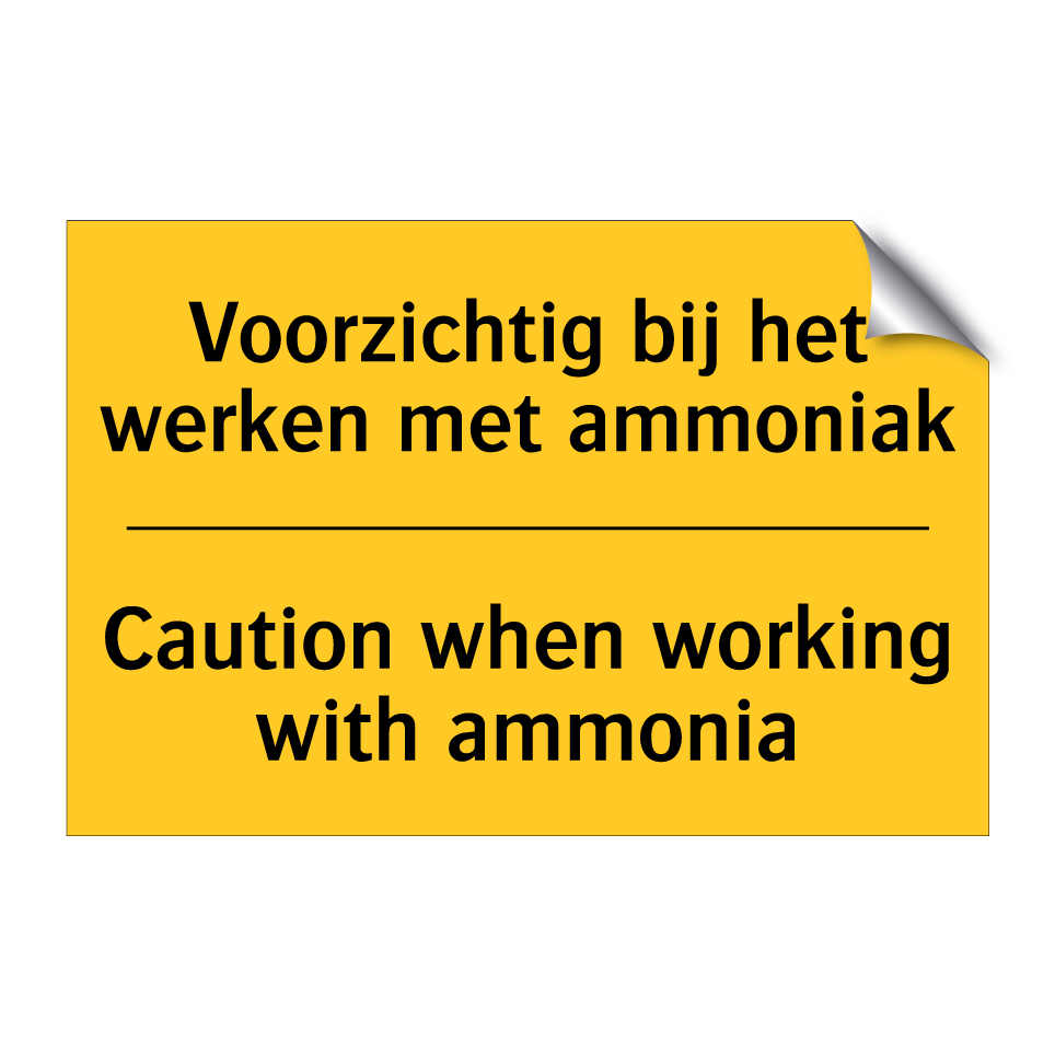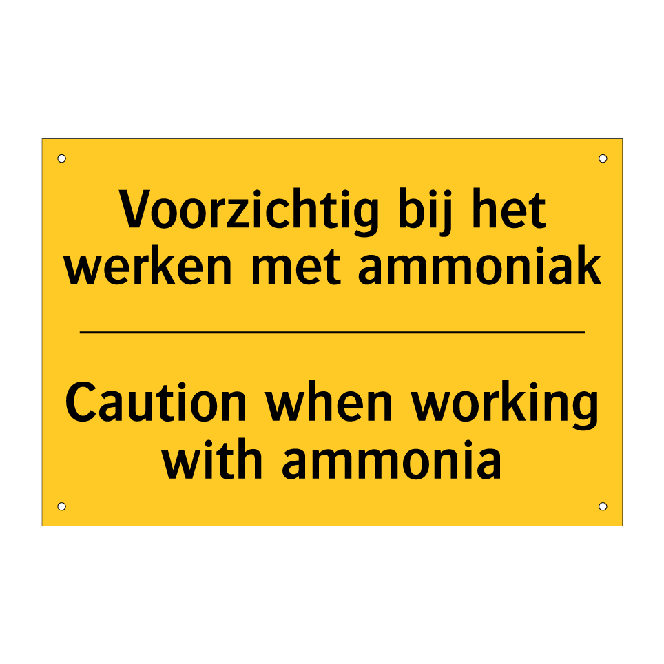 Waarschuwingsbord met de tekst Voorzichtig bij het werken met ammoniak / Caution when working with ammonia