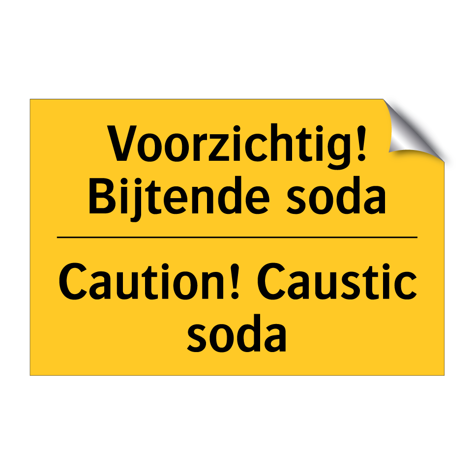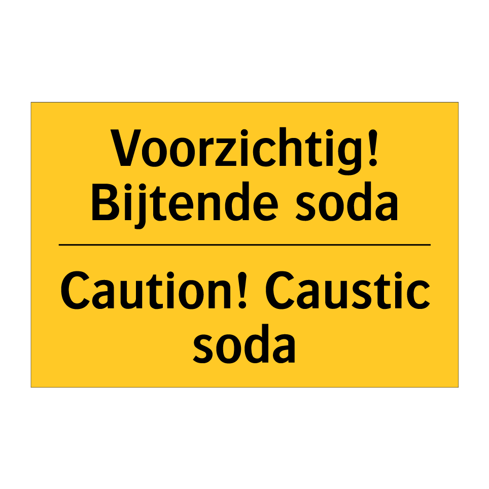 Waarschuwingsbord met de tekst Voorzichtig! Bijtende soda / Caution! Caustic soda