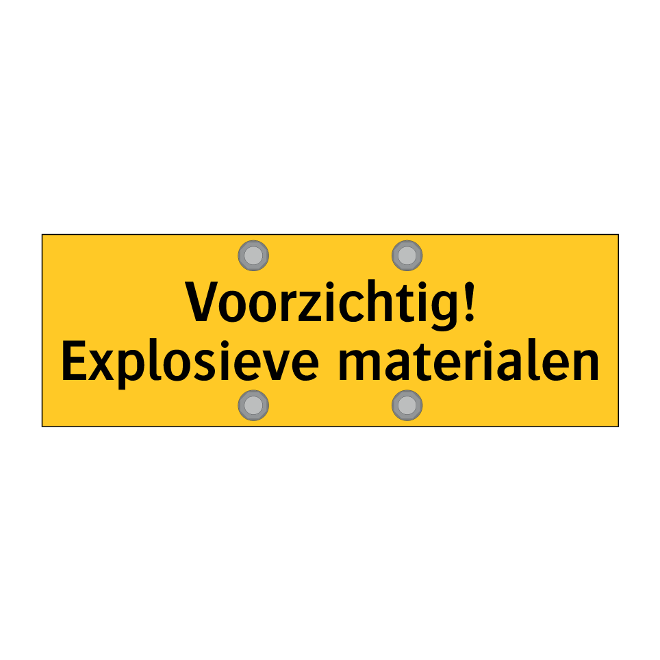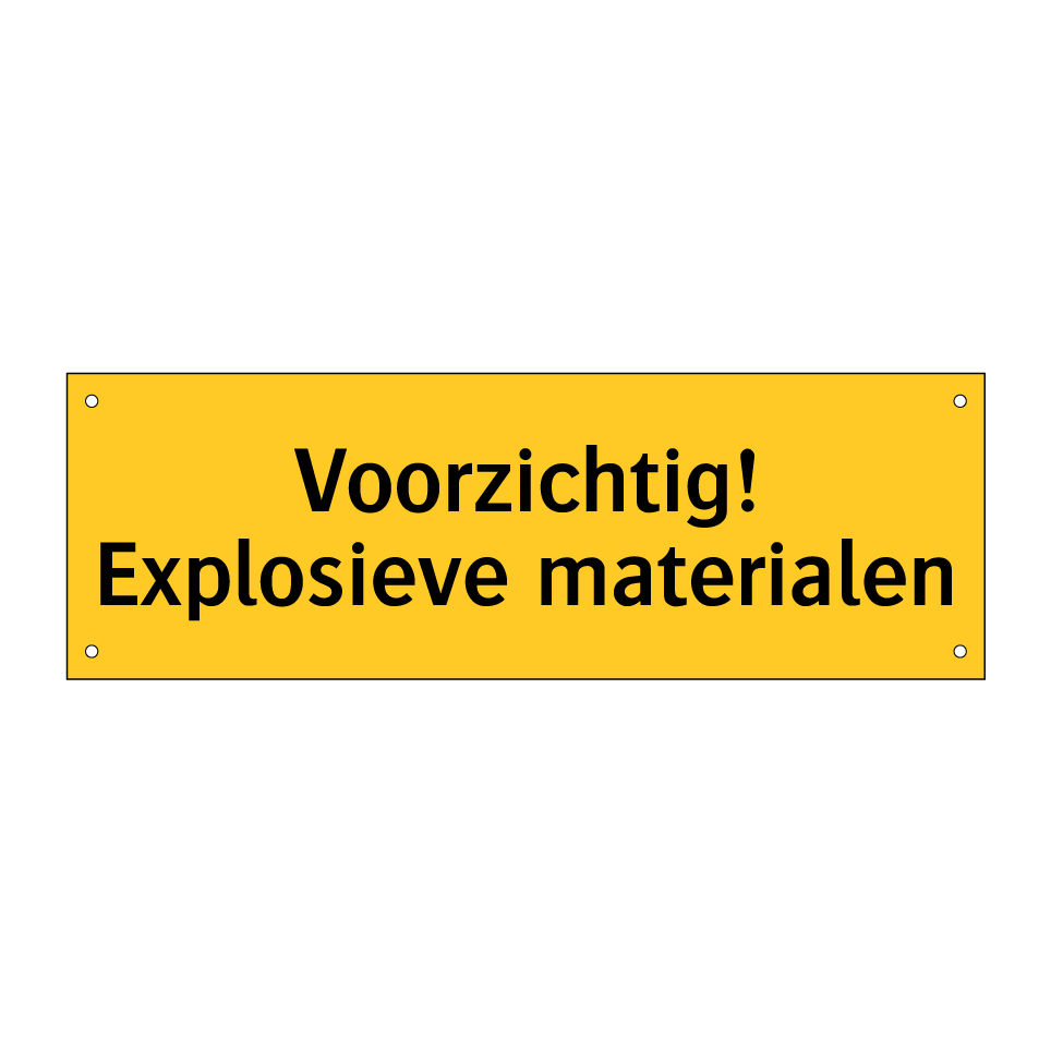 Waarschuwingsbord met de tekst Voorzichtig! Explosieve materialen