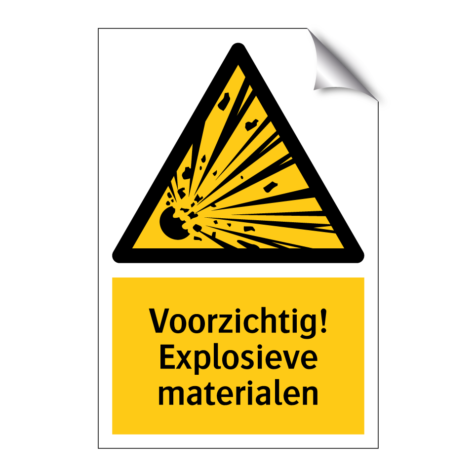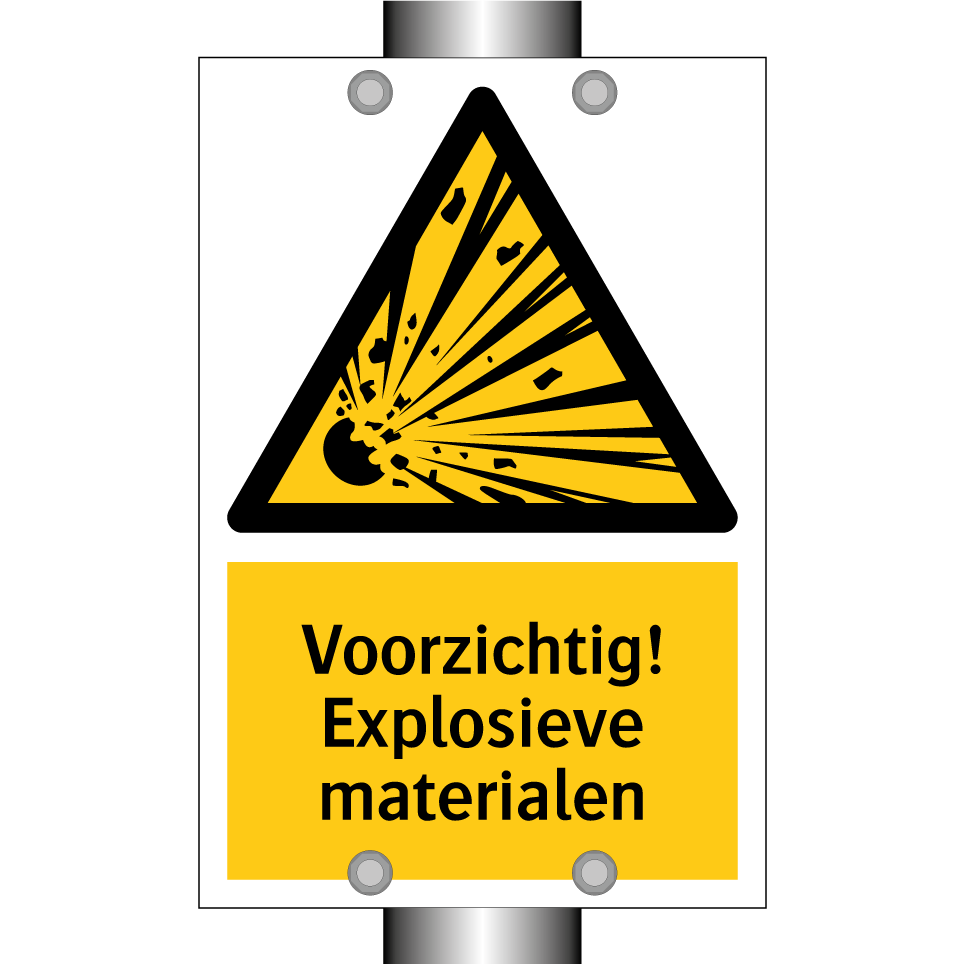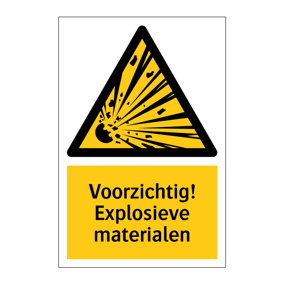 Waarschuwingsbord met de tekst Voorzichtig! Explosieve materialen