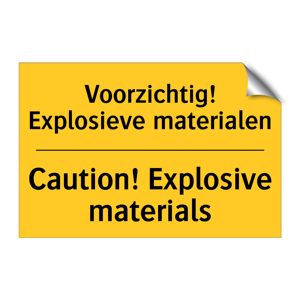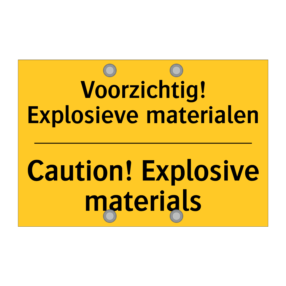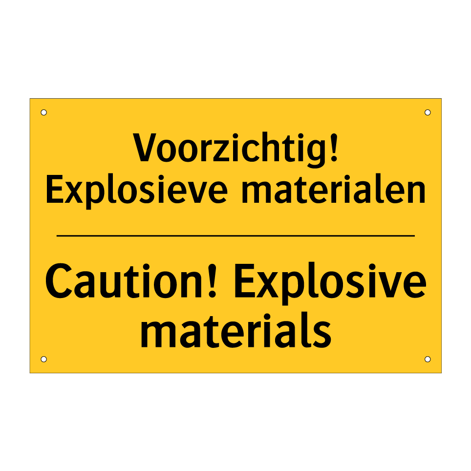 Waarschuwingsbord met de tekst Voorzichtig! Explosieve materialen / Caution! Explosive materials