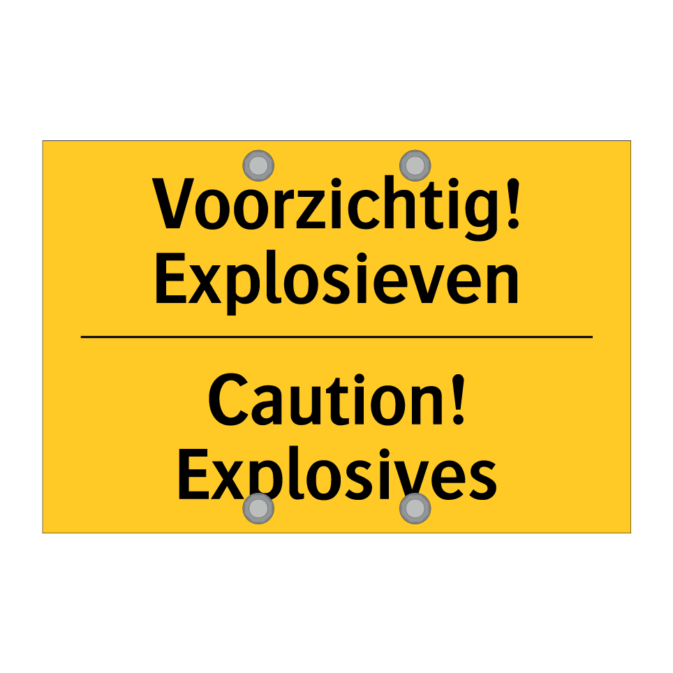 Waarschuwingsbord met de tekst Voorzichtig! Explosieven / Caution! Explosives