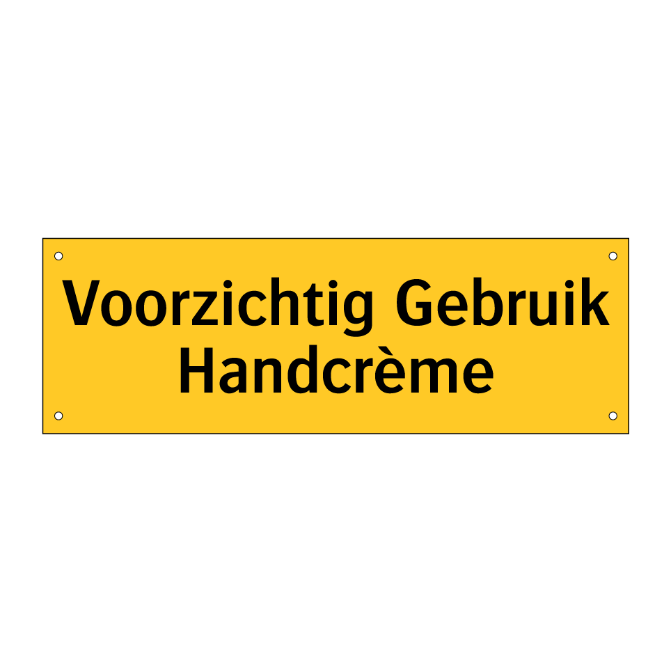 Waarschuwingsbord met de tekst Voorzichtig Gebruik Handcrème