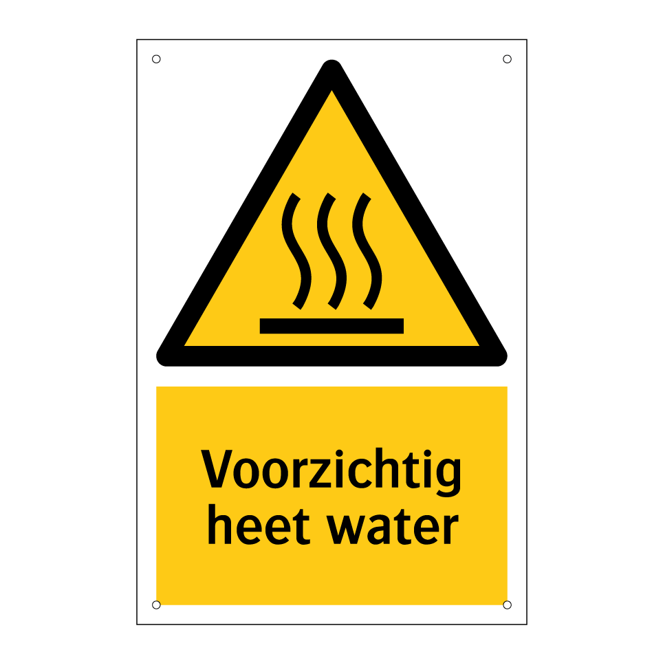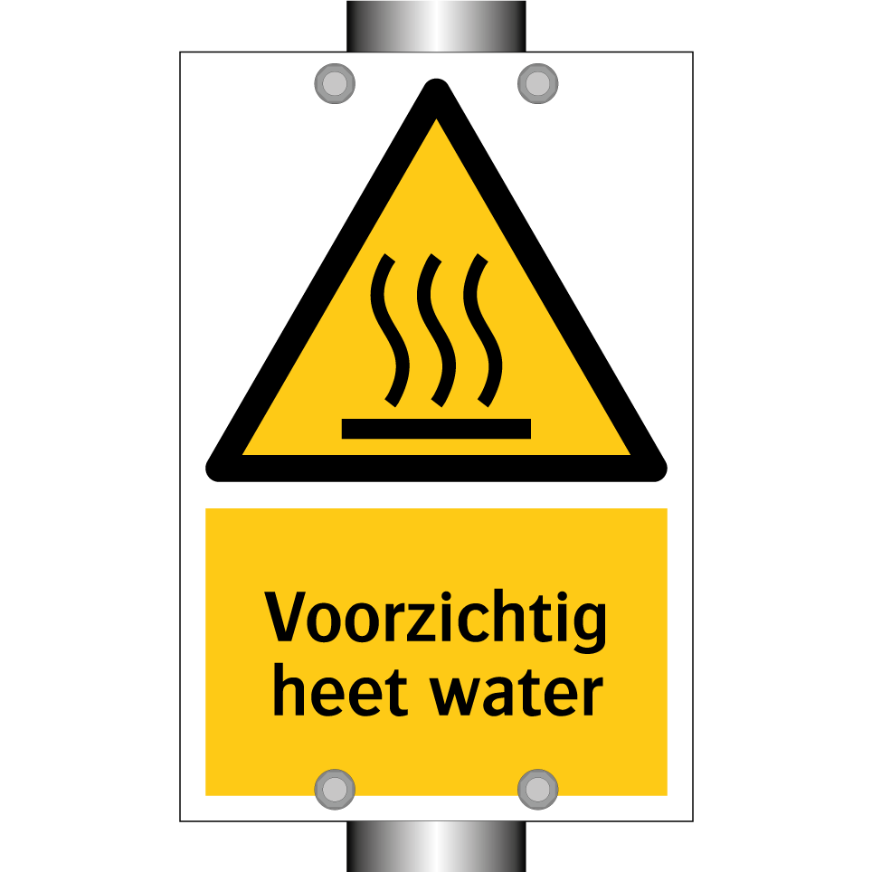 Waarschuwingsbord met de tekst Voorzichtig heet water