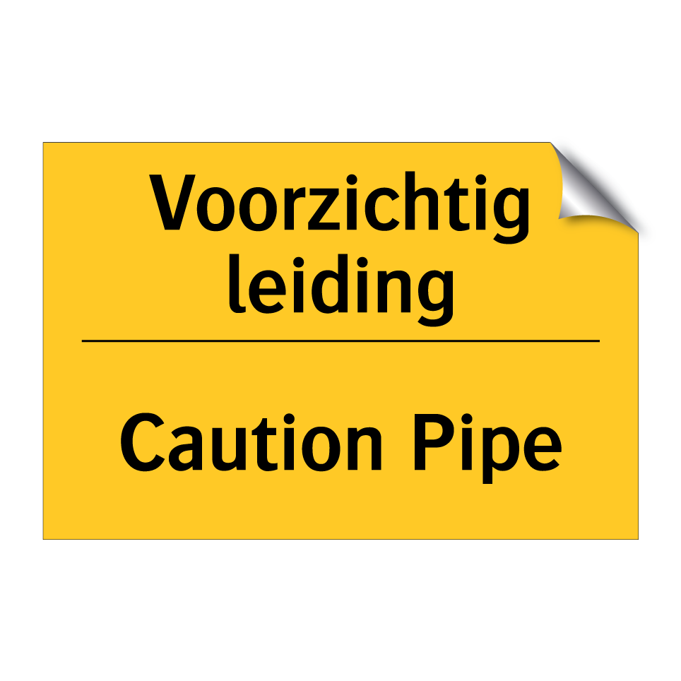Waarschuwingsbord met de tekst Voorzichtig leiding / Caution Pipe