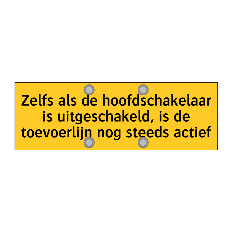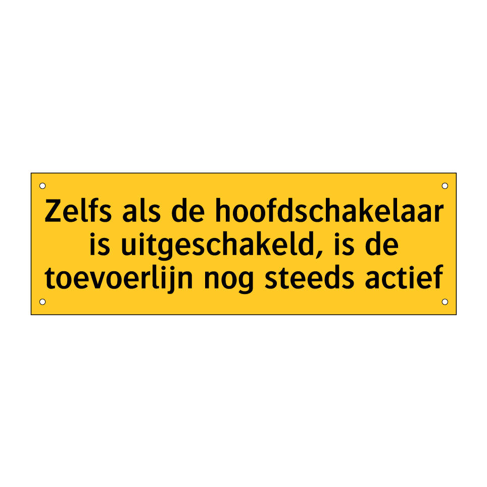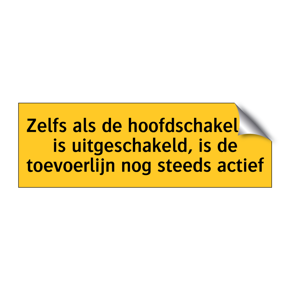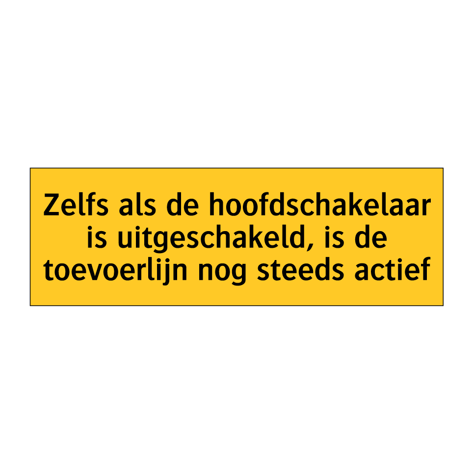 Waarschuwingsbord met de tekst Zelfs als de hoofdschakelaar is uitgeschakeld, is de toevoerlijn nog steeds actief