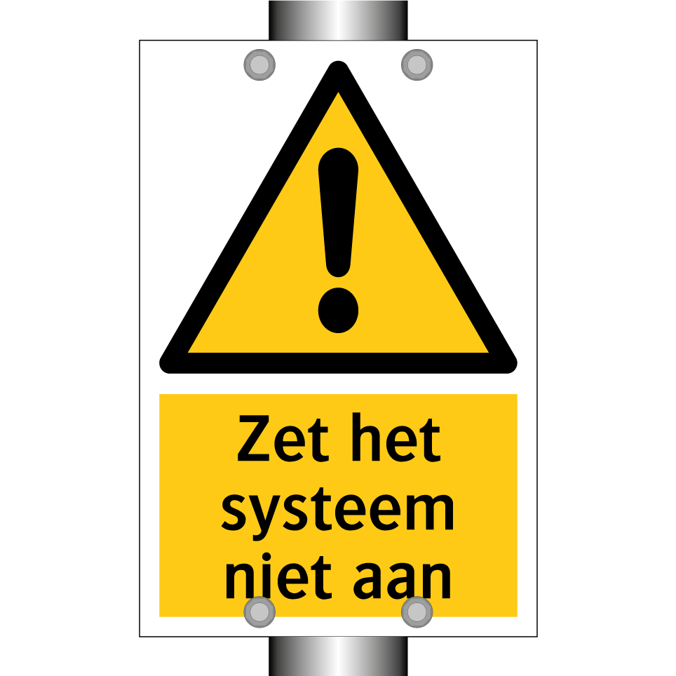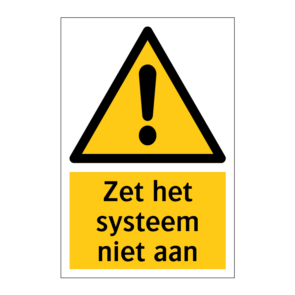 Waarschuwingsbord met de tekst Zet het systeem niet aan